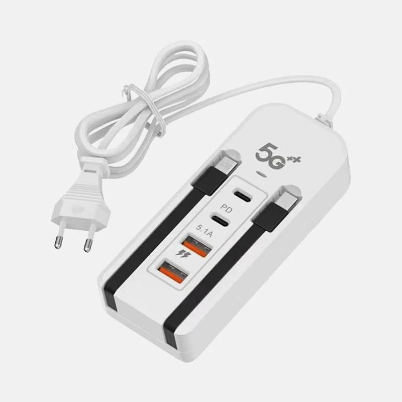 Универсальное зарядное устройство 20W со встроенными кабелями Type-C и Lightning + сетевая зарядка 2USB и 2PD