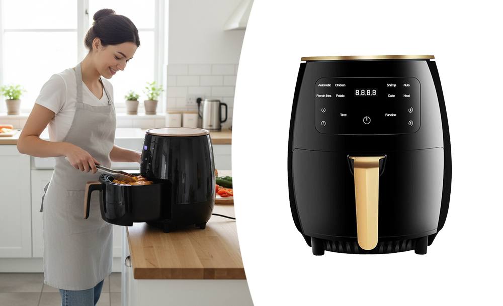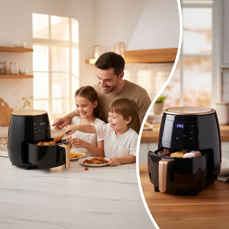 Объем 8 литров позволяет подавать большие порции для всей семьи и гостей. Сенсорное управление делает процесс простым – режим выбирается одним касанием. Жарка, запекание, разогрев – все в одном устройстве. Аэрогриль готовит быстро, легко и по-настоящему вкусно, ведь меньше жира – больше пользы и вкуса.