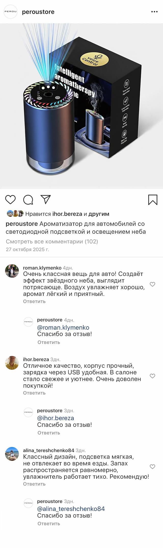 Встроенная LED-подсветка создает уютную атмосферу, а режим “звездного неба” проецирует мягкий световой узор на потолок авто. Устройство работает от USB, имеет компактный дизайн и обеспечивает тихую работу. Просто добавьте несколько капель любимого масла для ароматизации и релаксации в дороге.