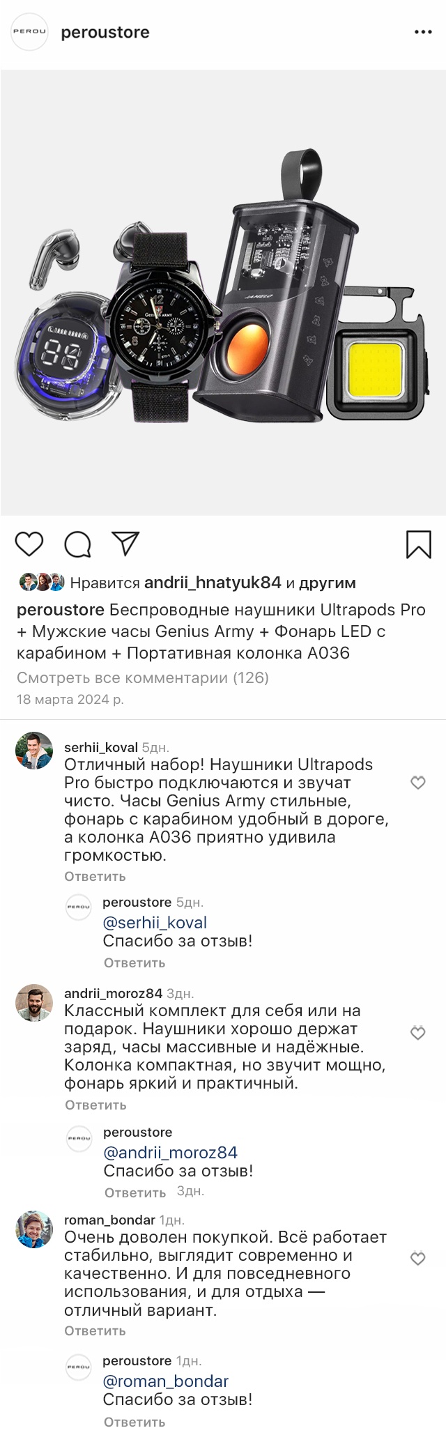 Это идеальный набор для активного образа жизни, заботливо собранный в одном комплекте. Беспроводные наушники Ultrapods Pro дарят чистый звук и свободу движений. Мужские часы Genius Army впечатляют надежностью и стильным дизайном. Компактный фонарь LED с карабином всегда под рукой – для походов и приключений.