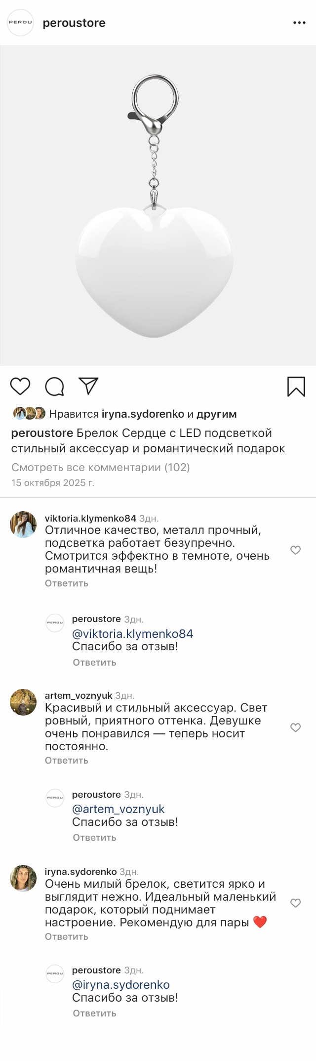 Изготовлен из прочного и приятного на ощупь пластика, брелок сочетает элегантность и практичность. Светящееся сердце: элегантность в деталях. Брелок отличается экономичным энергопотреблением и долговечностью.
