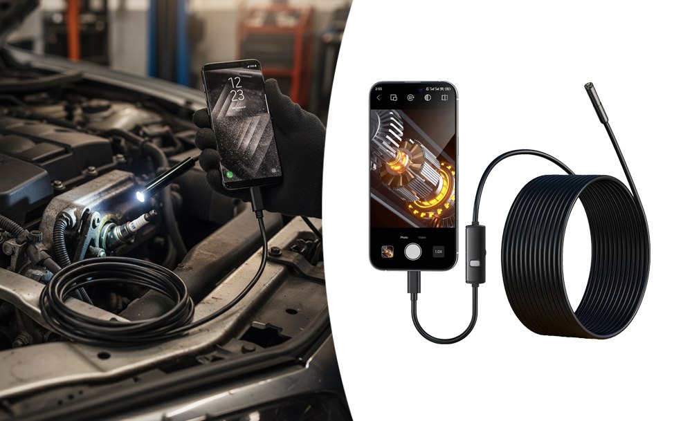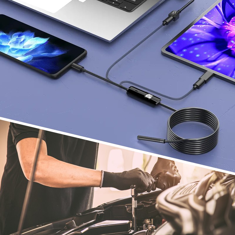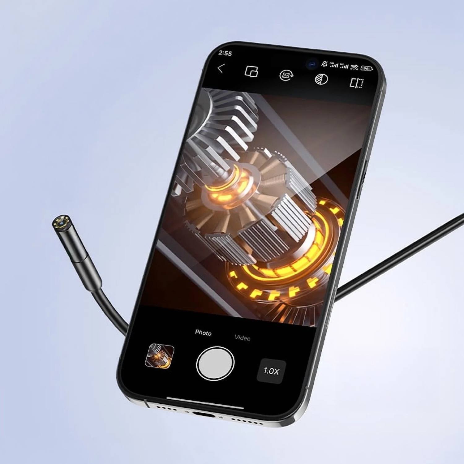 Гибкий кабель позволяет легко заглянуть в узкие щели и недоступные уголки, а высокое качество изображения гарантирует четкую картинку в реальном времени. Компактный и удобный, этот эндоскоп превращает сложные проверки в легкую и безопасную задачу. Он идеально подходит для ремонта, диагностики и осмотра любых объектов.