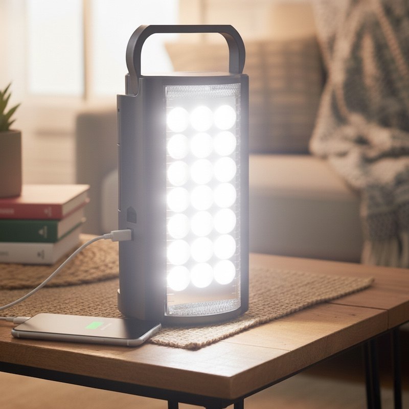 Фонарь имеет встроенный повербанк, позволяющий экстренно подзарядить телефон или планшет через USB-порт. Прочный корпус и удобная ручка делают его надежным помощником в любой ситуации.