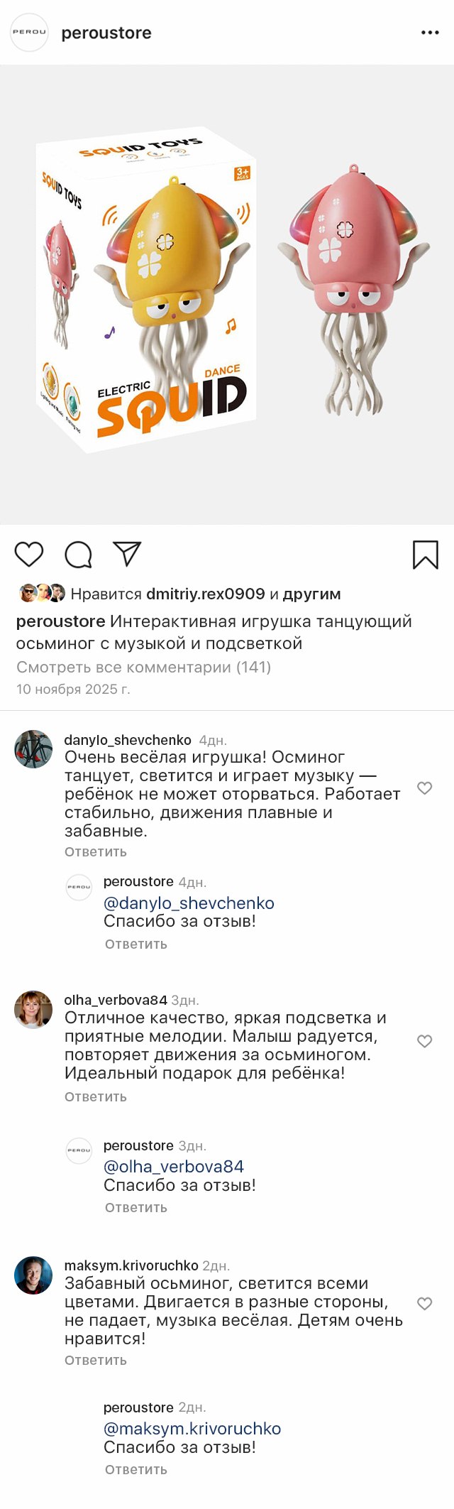 Интерактивный танцующий осьминог — это яркая и весёлая игрушка для активной игры! Он светится разноцветными огнями, проигрывает весёлую музыку и двигается на маленьких колёсиках, шевеля лапками, создавая настоящее шоу прямо у вас дома.