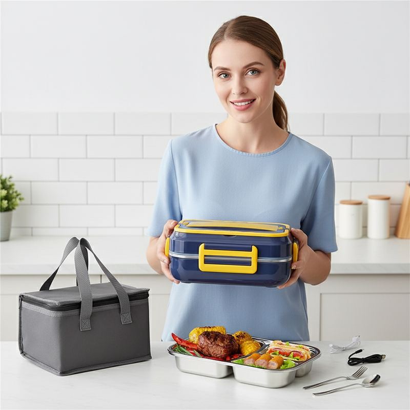 Электрический ланч-бокс Electric Lunch Box создан для тех, кто ценит комфорт и домашнюю еду. Он позволяет легко разогреть обед – достаточно подключить устройство к электросети или прикуривателю. Плотно закрывающийся корпус предотвращает протекание и долго держит тепло.