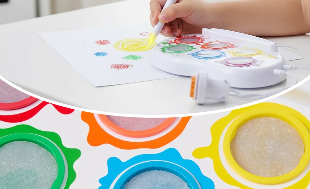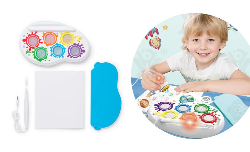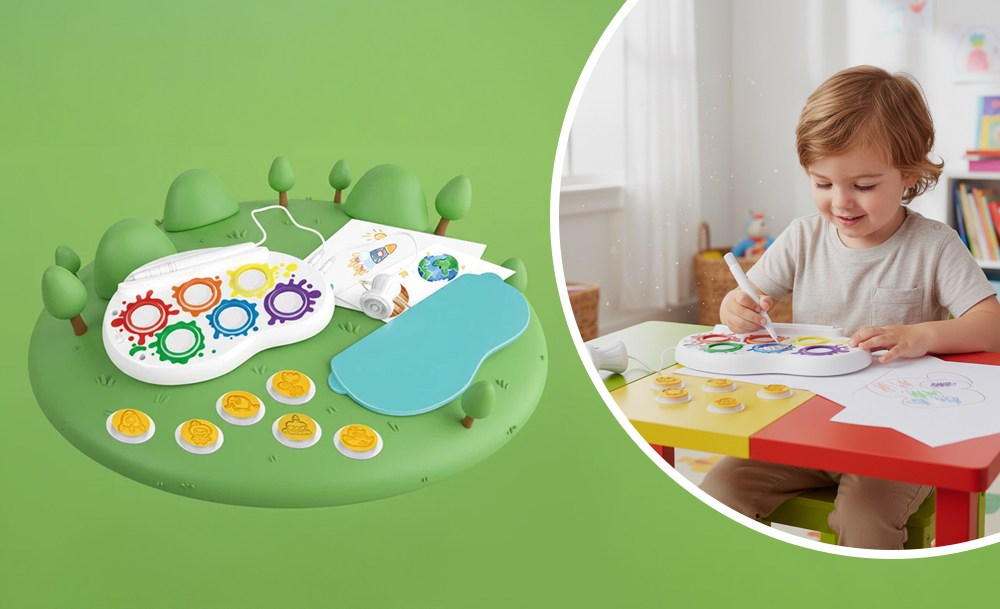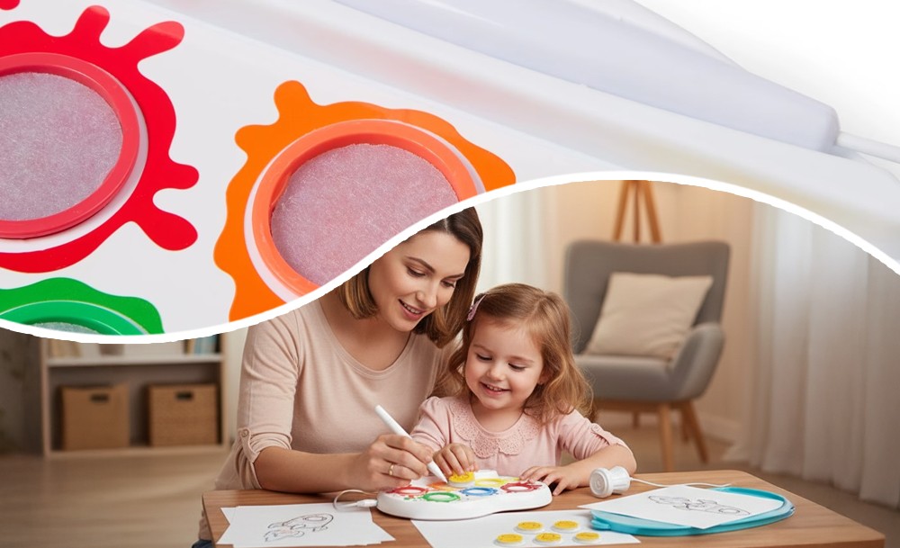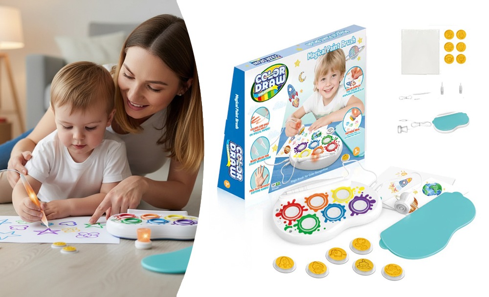 Компактный набор удобно брать с собой в дорогу или использовать дома. Он развивает воображение, мелкую моторику и творческие навыки, превращая процесс рисования в увлекательную игру без хаоса и беспорядка.