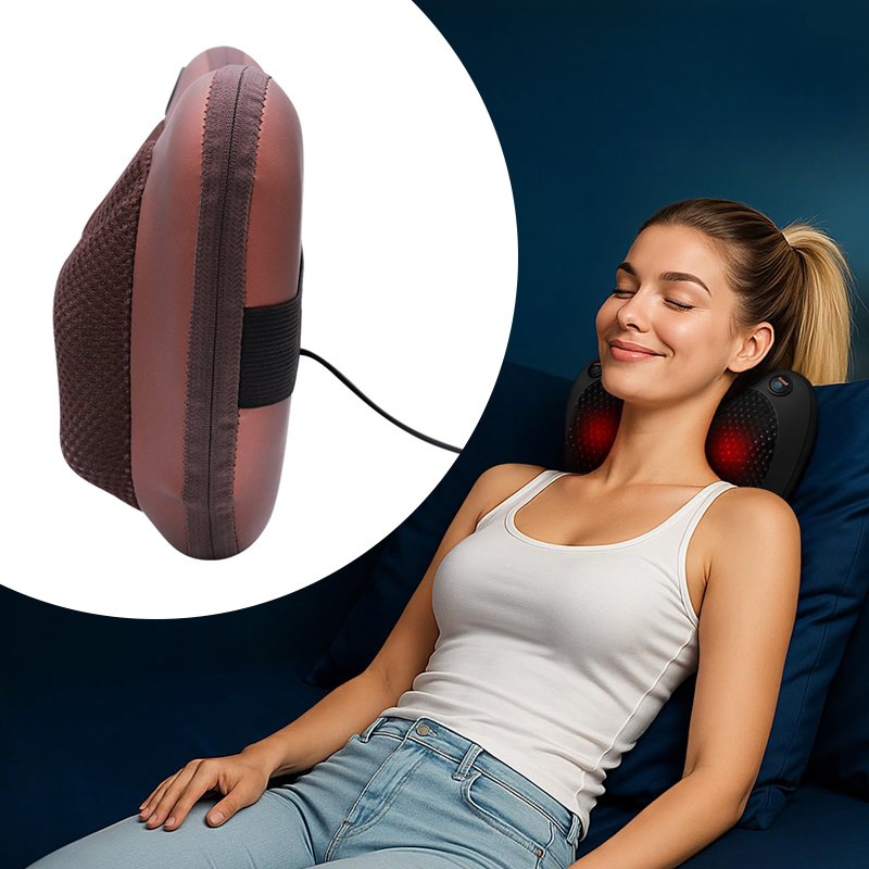 Массажная подушка Massage Pillow с инфракрасным подогревом – ваш персональный помощник для ежедневного релакса и быстрого восстановления сил. Благодаря сочетанию роликового массажа и инфракрасного прогрева она эффективно снимает напряжение, улучшает кровообращение и устраняет боль в мышцах.