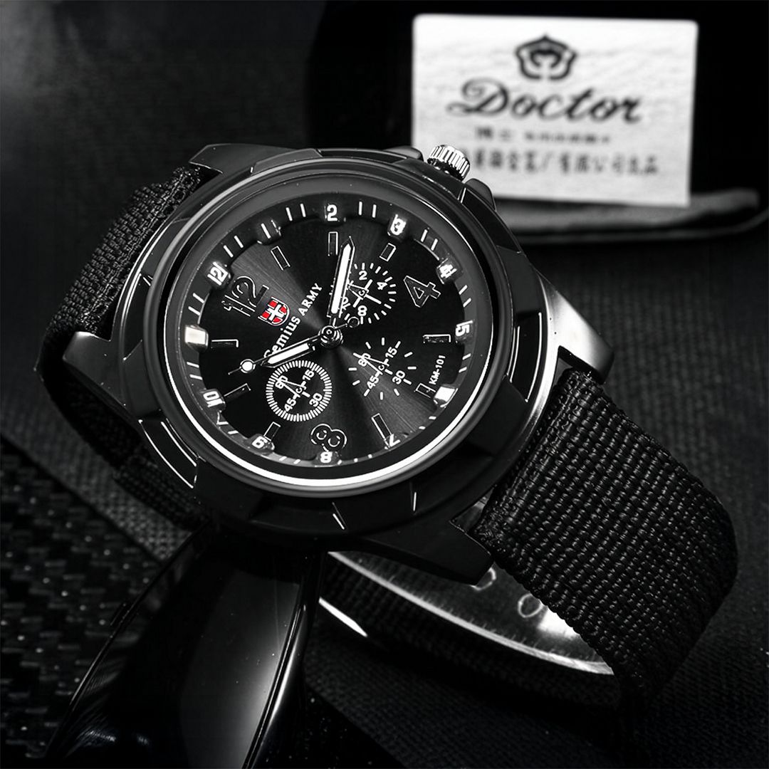 Мужские часы Genius Army отличаются крепким корпусом из нержавеющей стали и кварцевым механизмом для точного хронометража. Диаметр циферблата составляет 42 мм – это обеспечивает четкое считывание времени.