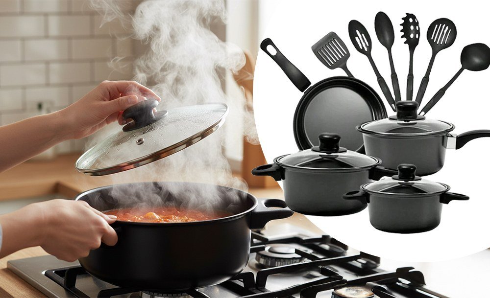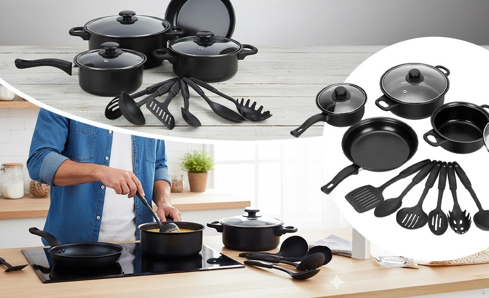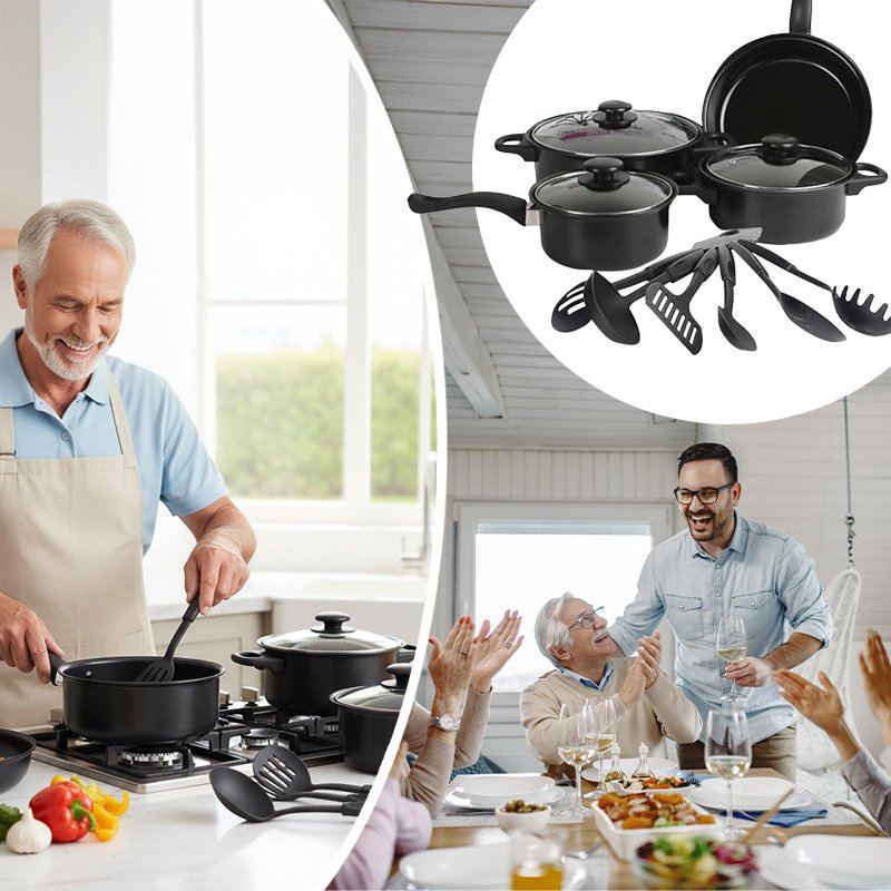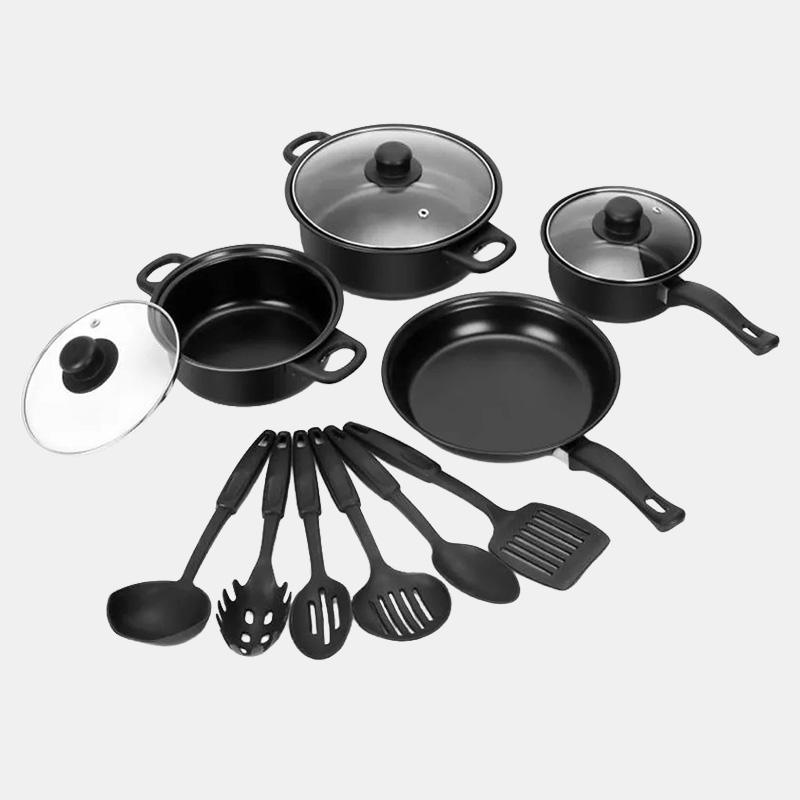 Набор посуды Dessini OR-2103 – это универсальное решение для домашней кухни. В комплект входит 13 предметов: кастрюли разных объемов, удобная сковорода и практичные кухонные принадлежности – все, что нужно для варки, жарки, тушения и запекания.