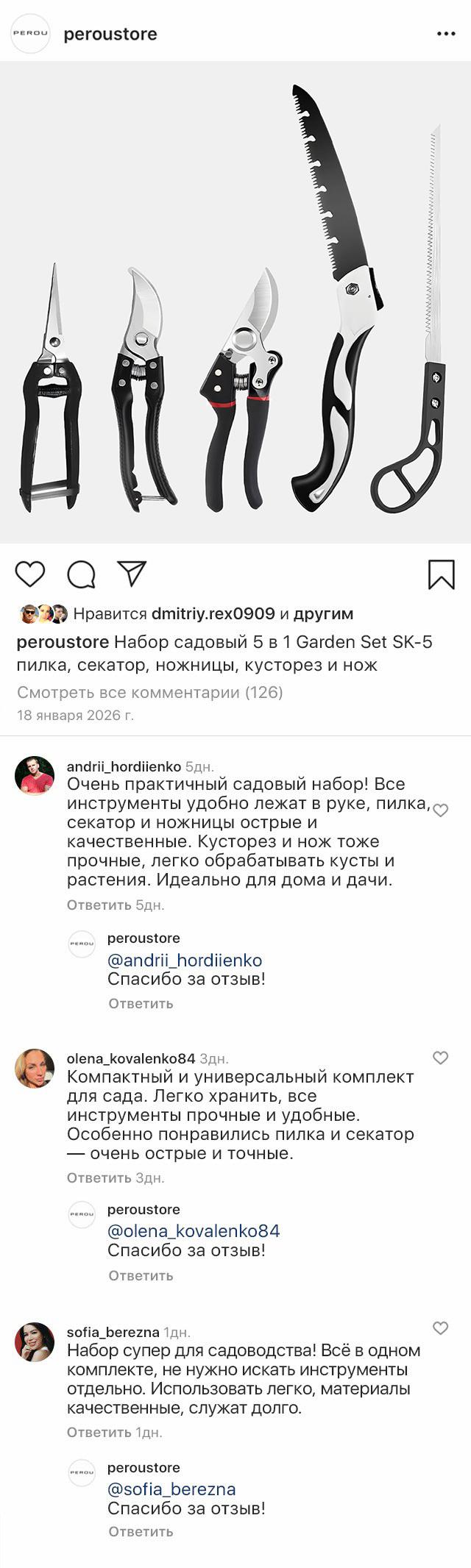 Набор 5 в 1 Garden Set SK-5 – все, что нужно для ухода за садом в одном комплекте! Пила, секатор, ножницы, кусторез и нож изготовлены из прочных материалов и прослужат долгие годы. Эргономичные ручки делают работу безопасной, а компактные инструменты удобно складываются на хранение или для переноса в другое место.