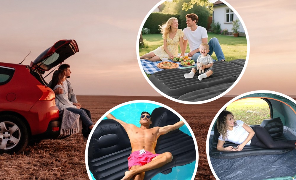 В комплект входят две надувные подушки и электрический насос, работающий от прикуривателя. Матрас идеально подходит для кемпинга, долгих путешествий и отдыха на природе, предлагая удобство и быстроту установки.