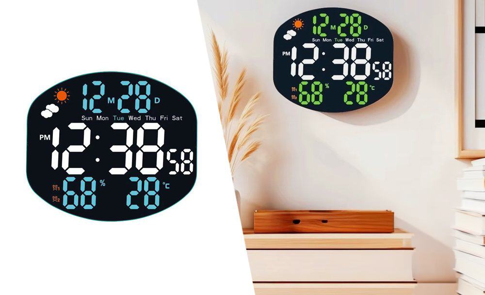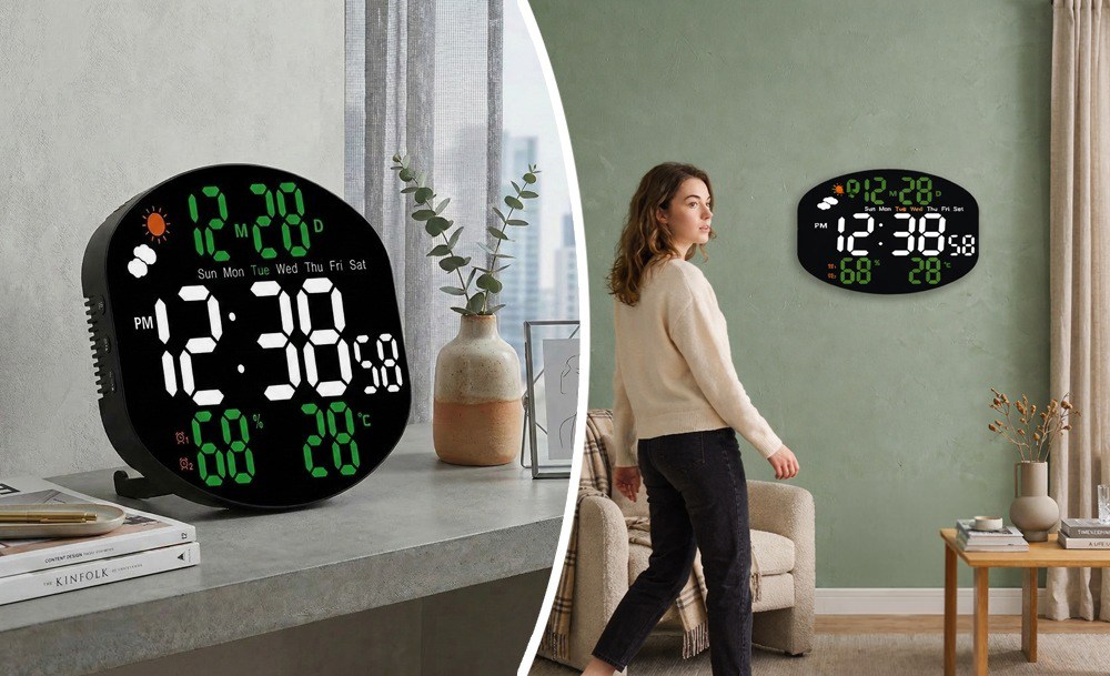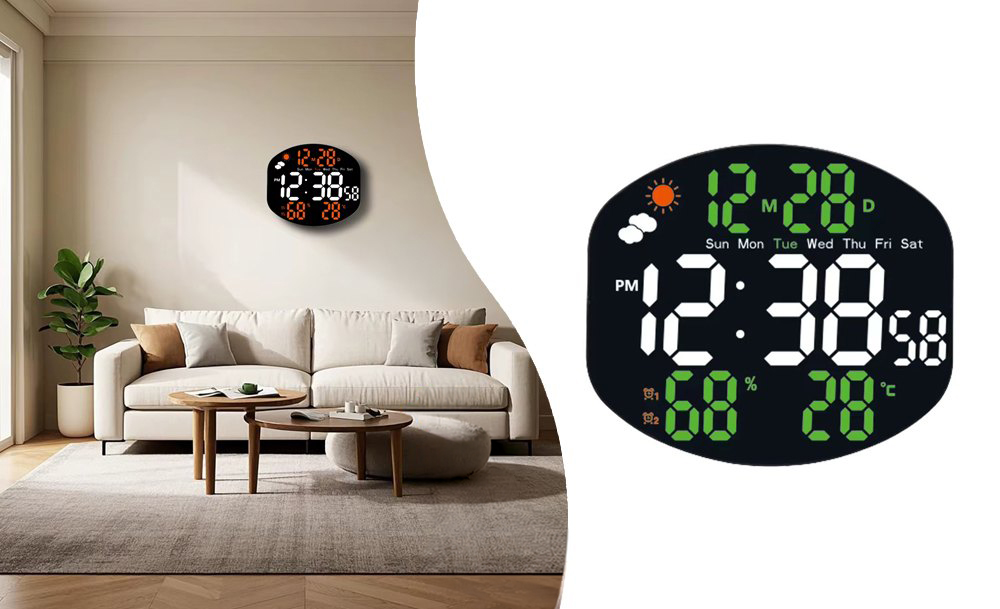 Настенные LED-часы с погодой, календарем и термометром – современное устройство для удобного контроля времени и окружающей среды. Яркий светодиодный дисплей обеспечивает отличную читаемость как днем, так и ночью, а благодаря подсветке крупные цифры хорошо видны с любого расстояния.