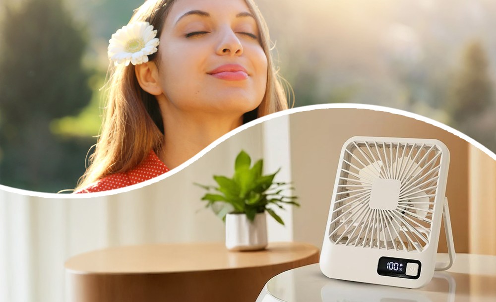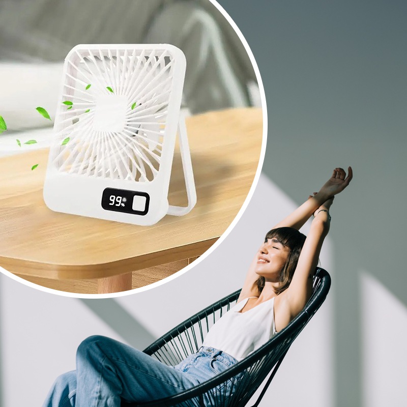Компактный настольный мини-вентилятор с поворотной складной ручкой на 180° обеспечивает комфортное охлаждение в любых условиях. Удобная конструкция позволяет использовать устройство как на столе, так и на полу или держать в руках. Пять скоростей помогают выбрать оптимальный режим обдува.
