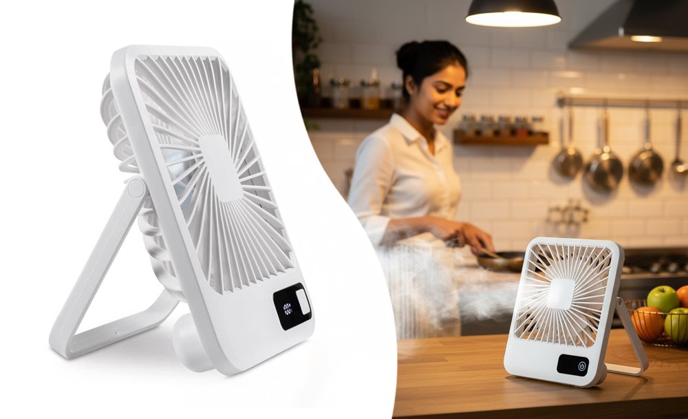 Прибор включается с кнопки и дополнен LED-дисплеем, где отображаются текущие настройки, делая его управление простым и наглядным. Он идеально подходит для дома, офиса или поездок, сочетая мобильность, стиль и эффективность. Отличный спаситель от жары в летнюю пору!