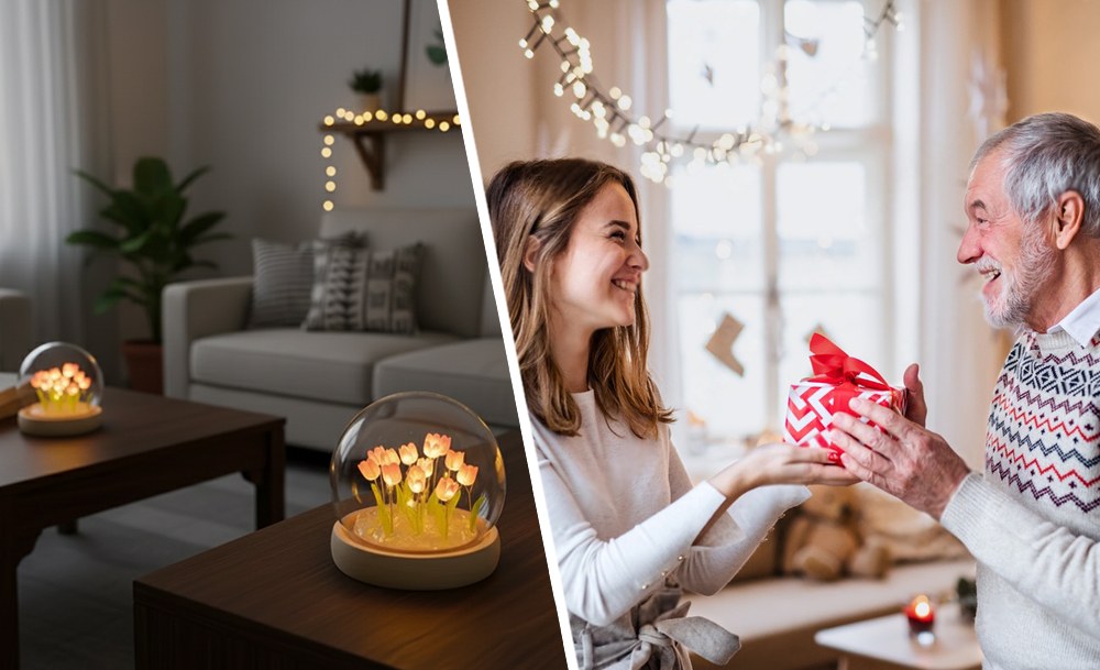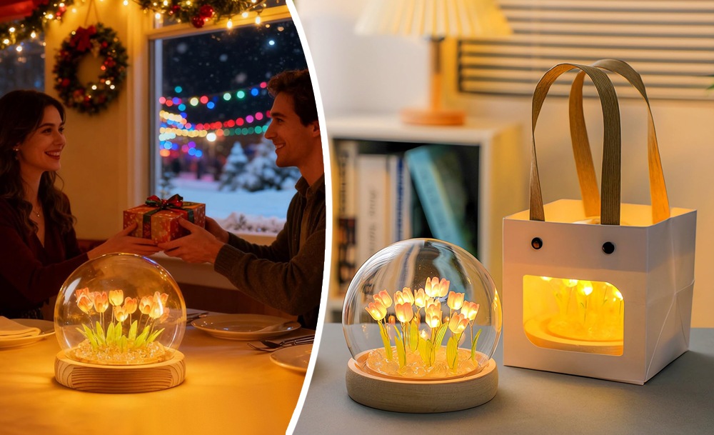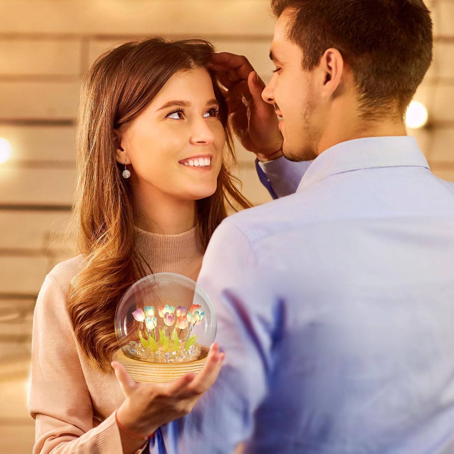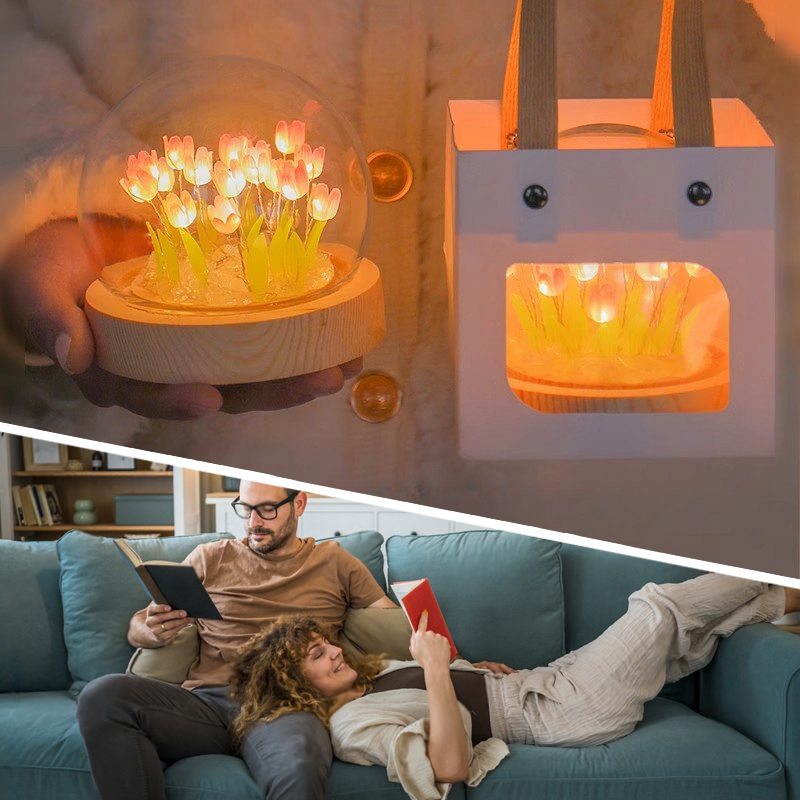 Настольный ночник тюльпаны в стеклянной колбе с LED подсветкой создаёт уютную и тёплую атмосферу в комнате. Элегантный дизайн с нежными тюльпанами в стеклянной колбе станет стильным дополнением интерьера и подходит для детской, спальни или гостиной.