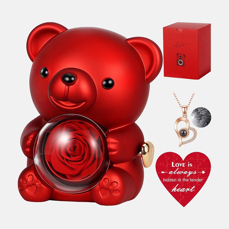 Элегантная красная роза подчеркивает романтичность момента. Но главная изюминка – стильный кулон I Love You, который станет трогательным напоминанием о чувствах. Такой набор объединяет в себе сразу три символа любви: игрушку, цветок и украшение. Подарок не требует дополнительной упаковки и готов к вручению по любому поводу.