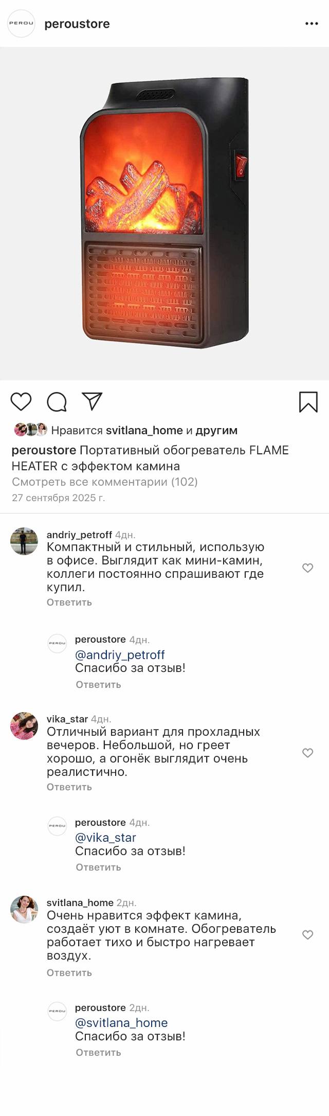 Обогреватель FLAME HEATER оснащен таймером и защитой от перегрева для безопасного использования. Он идеально подходит для офиса, дачи или спальни, когда нужен быстрый и уютный обогрев – достаточно подключить его к розетке.