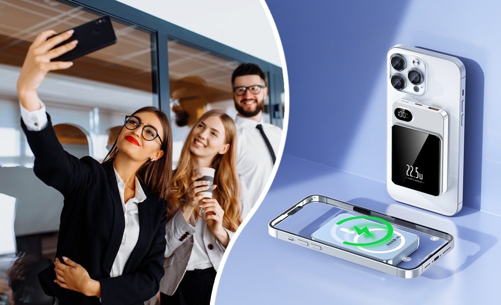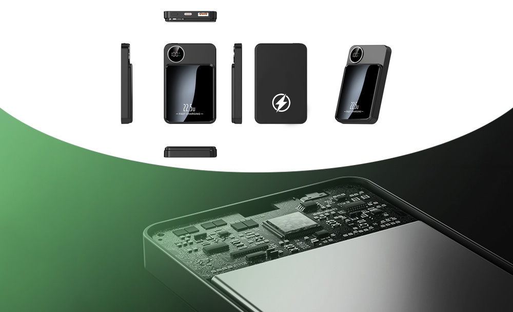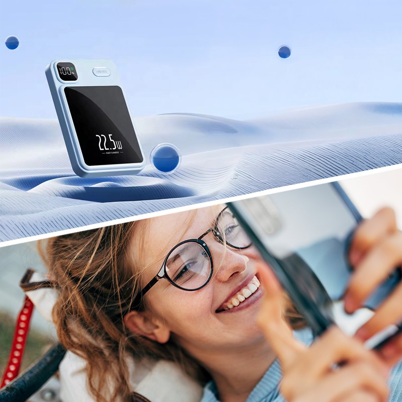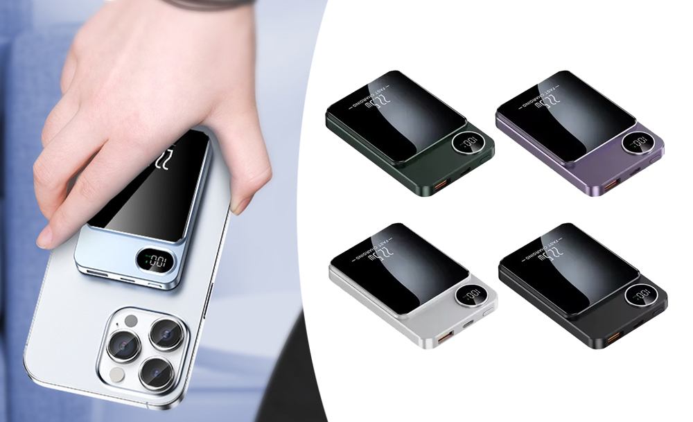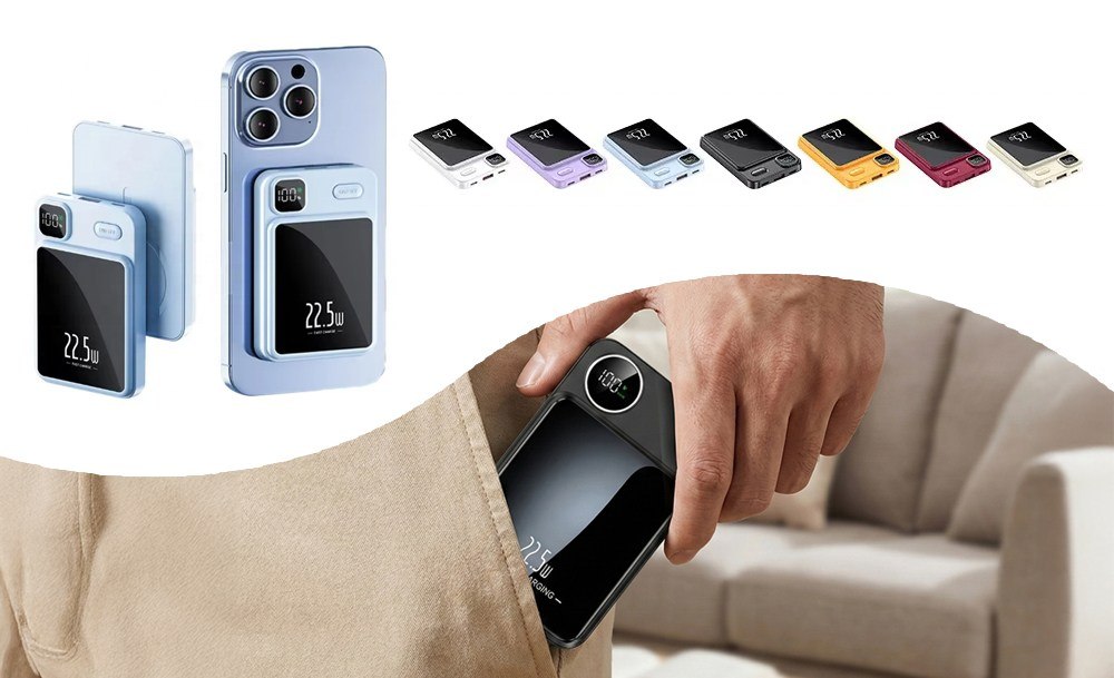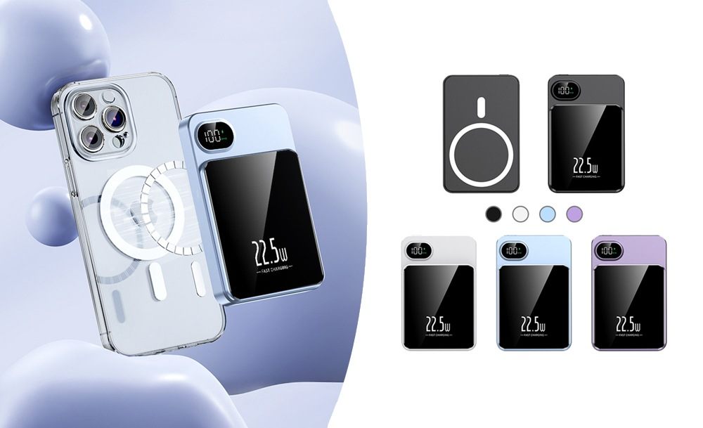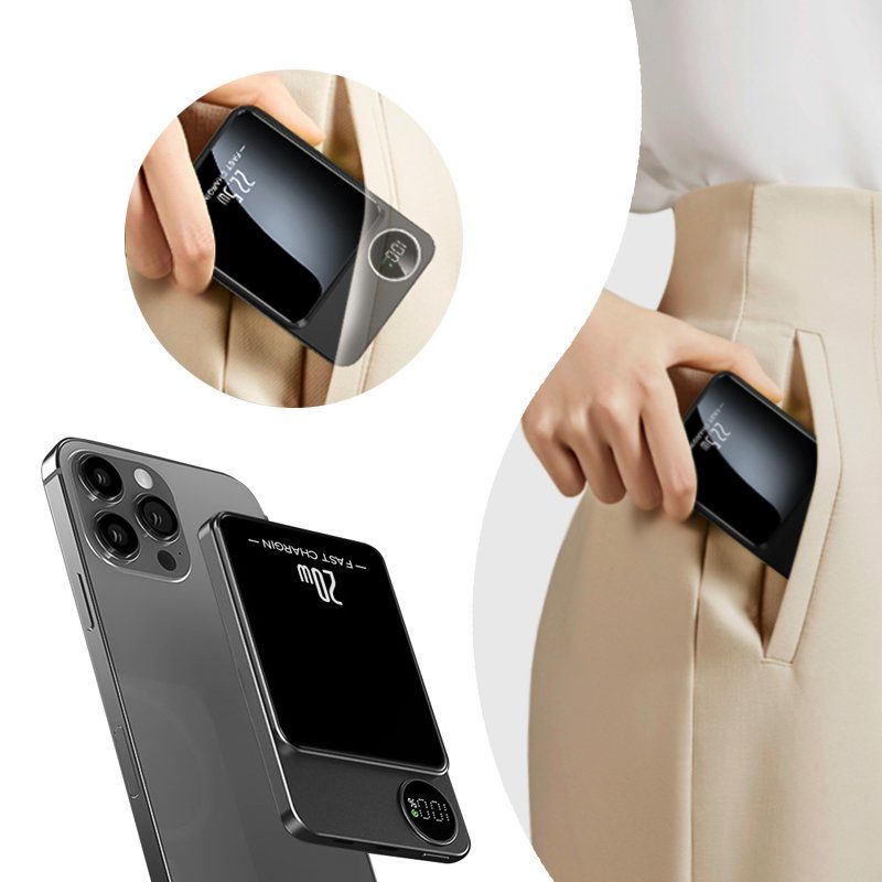 Благодаря магнитному креплению повербанк прочно фиксируется на телефоне, а беспроводное соединение поддерживает стабильное подключение без лишних кабелей. Информативный LCD-дисплей точно отображает уровень заряда, помогая контролировать питание в любой ситуации.