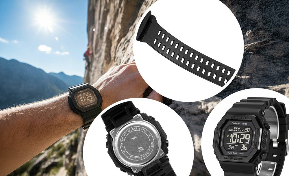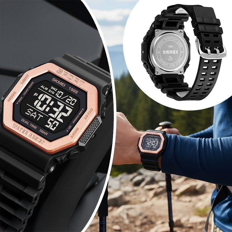 Тактические спортивные часы SKMEI 1988 – идеальный выбор для активной жизни и экстремальных условий. Прочный, ударостойкий корпус выдерживает любые нагрузки, а водонепроницаемость до 50 метров позволяет не снимать аксессуар при плавании, пробежках под дождем или во время водных тренировок.