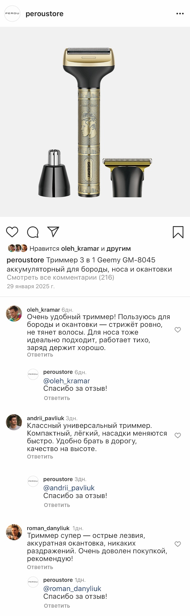 Триммер 3 в 1 Geemy GM-8045 – практичный помощник для мужчин, которые ценят аккуратность и удобство. Он легко приводит в порядок бороду и усы, делает четкую окантовку и безопасно удаляет волосы в носу и ушах. Острые стальные лезвия действуют мягко и точно, не вызывая раздражения даже на чувствительной коже.