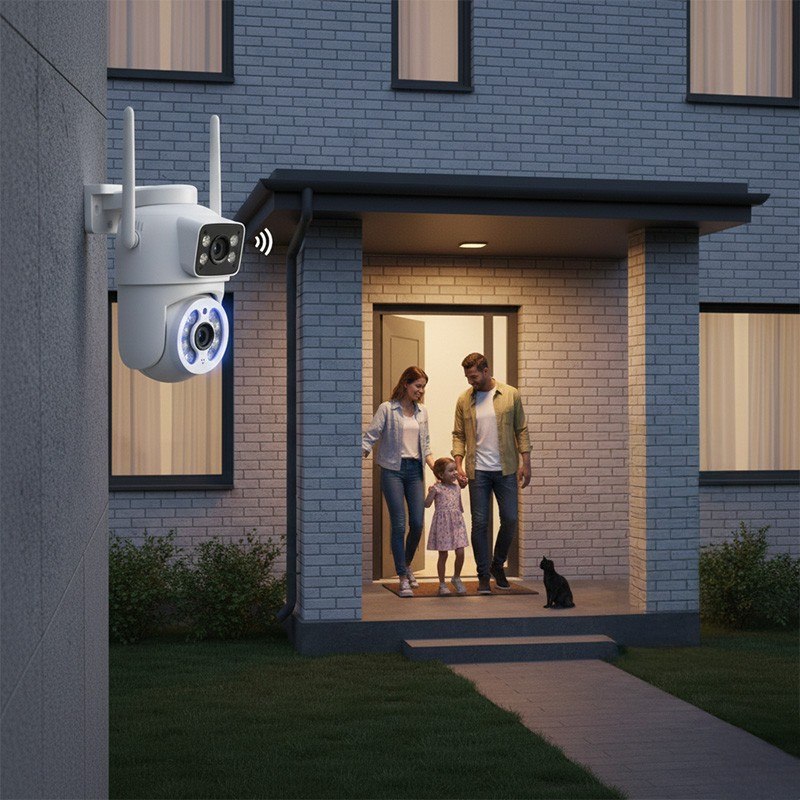 Уличная WiFi камера видеонаблюдения QN-22 V380 Pro – это надежная защита дома 24/7. Панорамный обзор 360° позволяет контролировать всю территорию без «слепых зон», а подключение по Wi-Fi обеспечивает удобный удаленный доступ со смартфона из любой точки мира.