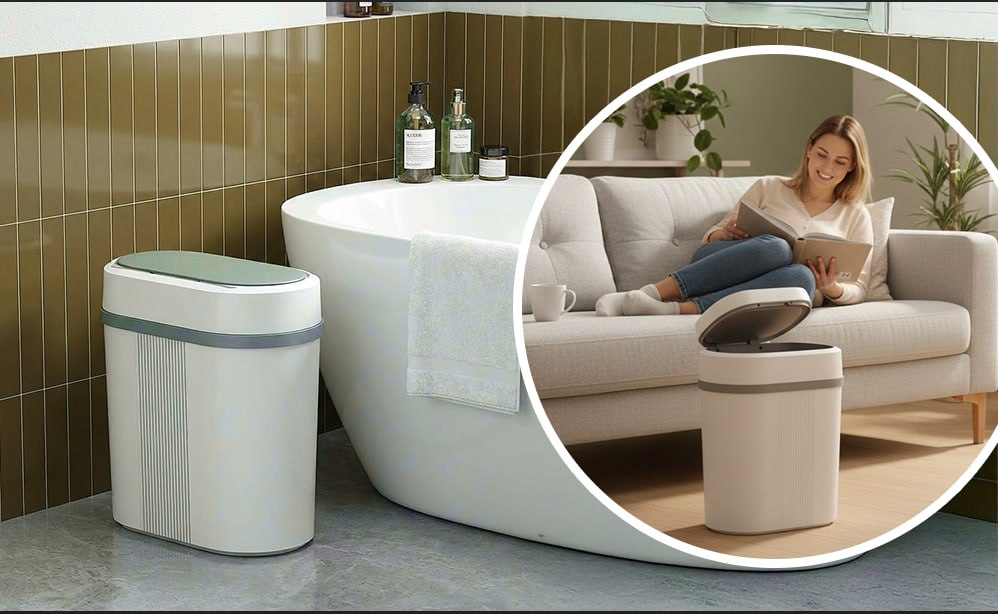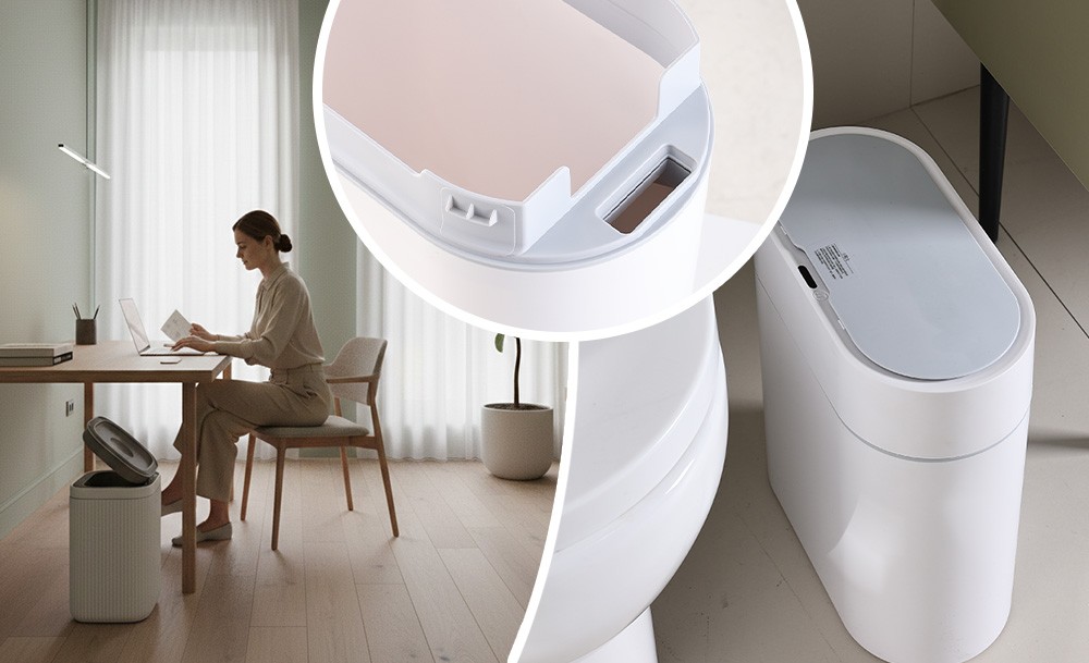 Устройство работает тихо и плавно, не создавая лишнего шума, а герметичная крышка надежно удерживает запахи внутри. Стильный минималистичный дизайн гармонично вписывается в любой интерьер – от квартиры до офиса. Корпус изготовлен из прочного влагостойкого материала, устойчивого к загрязнениям и простого в уходе.