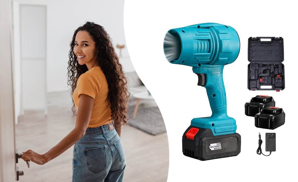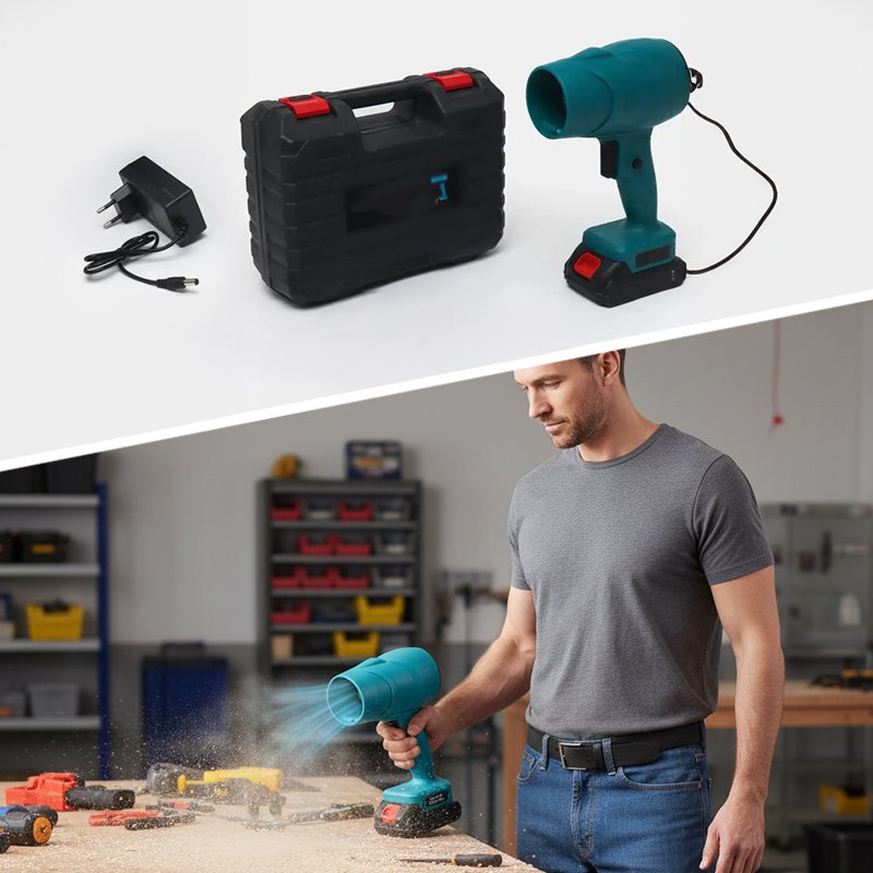 Акумуляторна повітродувка Mini Jet Turbo Fan 24V – компактний та потужний інструмент для акуратного прибирання. Сильний потік повітря швидко здуває листя, пил, пісок та дрібне сміття, залишаючи чисту поверхню. Вбудований акумулятор забезпечує повну свободу рухів без дротів та обмежень.