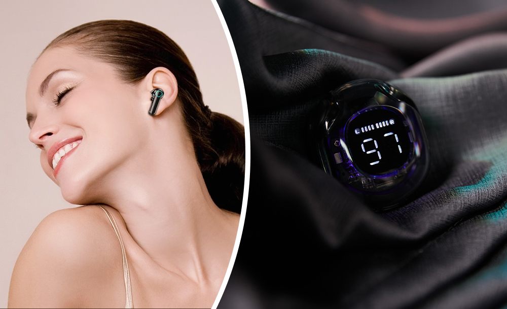 Портативна колонка дарує гучний звук у будь-якому місці — ідеальна для прогулянок, відпочинку або вечірок. Разом усі три пристрої створюють повний мультимедійний набір для сучасної розваги.