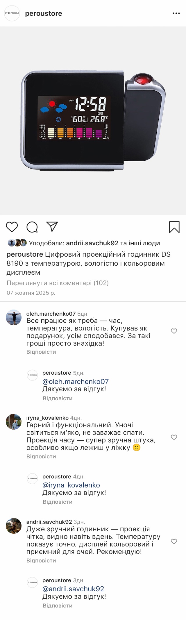 Цифровий годинник DS 8190 поєднує функції метеостанції та проектора часу. Кольоровий LCD-дисплей 3.6 дюйма відображає поточний час, дату, а також показники температури та вологості у приміщенні.