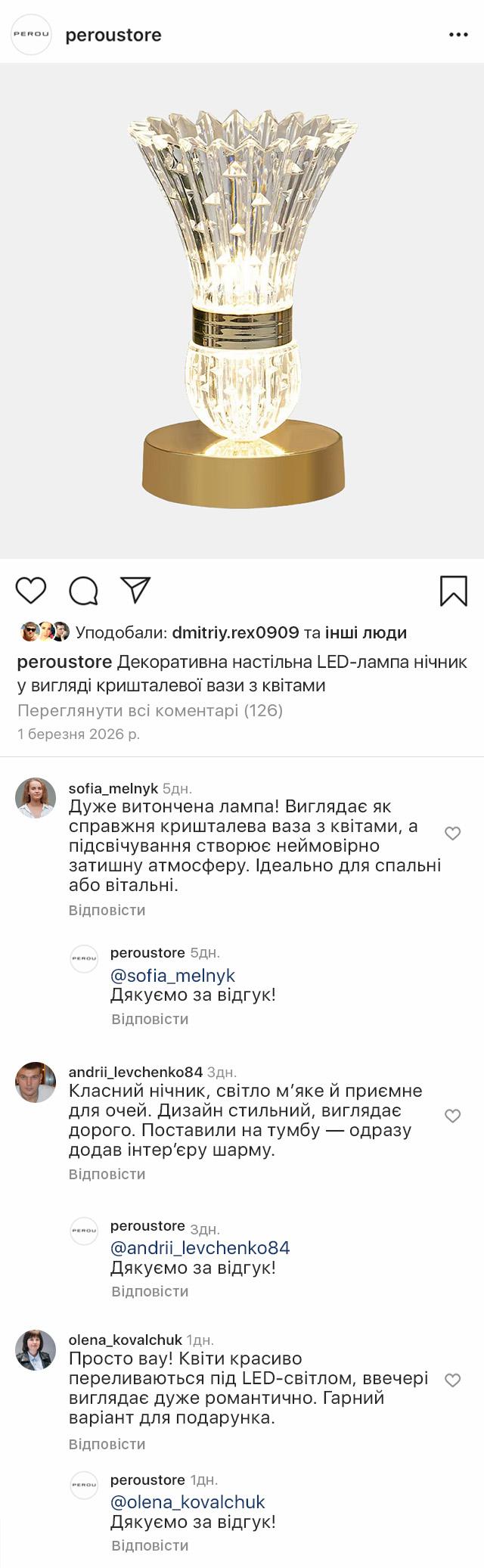Настільна LED-лампа у вигляді кришталевої вази з квітами – це витончений нічник, який наповнює простір м’яким світлом та створює неповторну атмосферу затишку. Ефект кришталю гарно заломлює світло, формуючи ніжні переливи.
