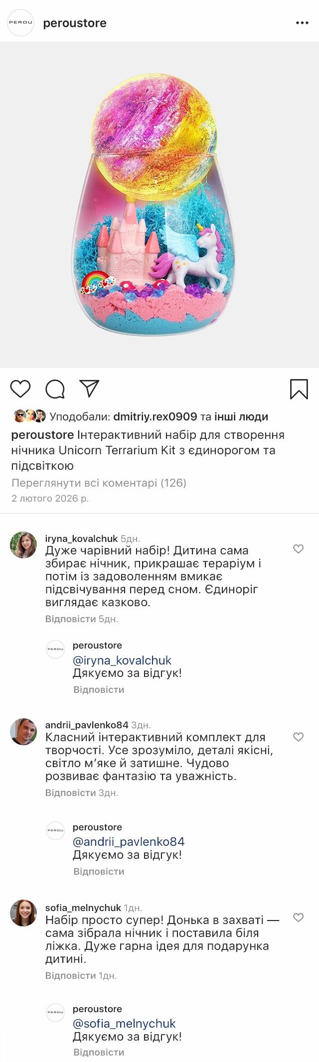 Інтерактивний набір Unicorn Terrarium Kit – це два задоволення в одному: розвивальна іграшка та чарівний нічник. Дитина самостійно створює магічний світ з єдинорогом: прикрашає банку кольоровим кінетичним піском, мохом, камінцями та мініатюрами замку, веселки й грибів, а потім розфарбовує місячну лампу з м’яким підсвічуванням.