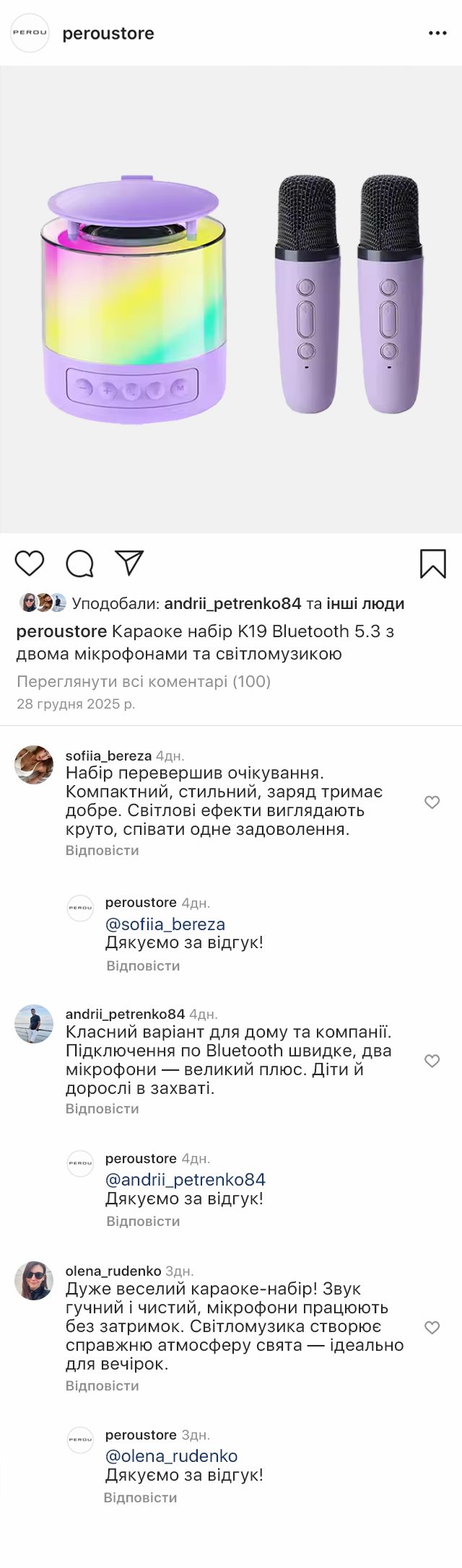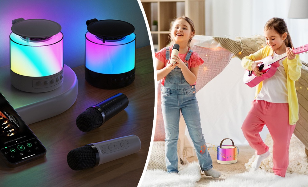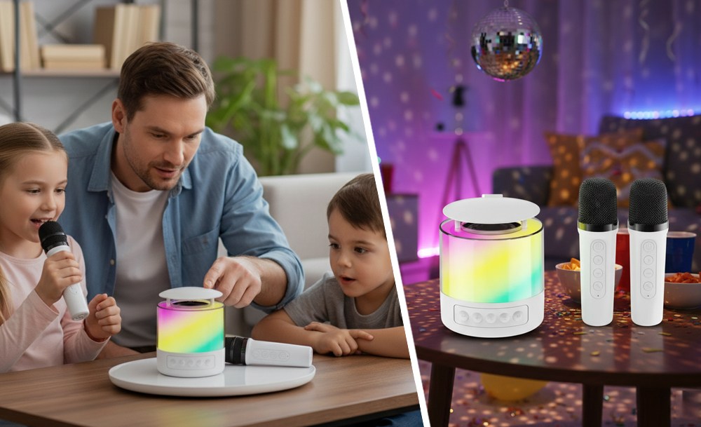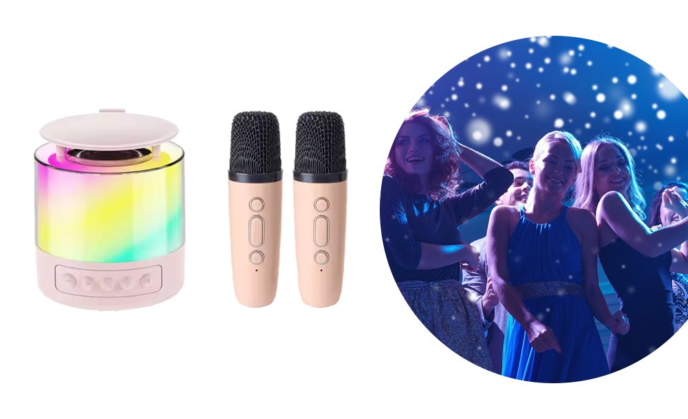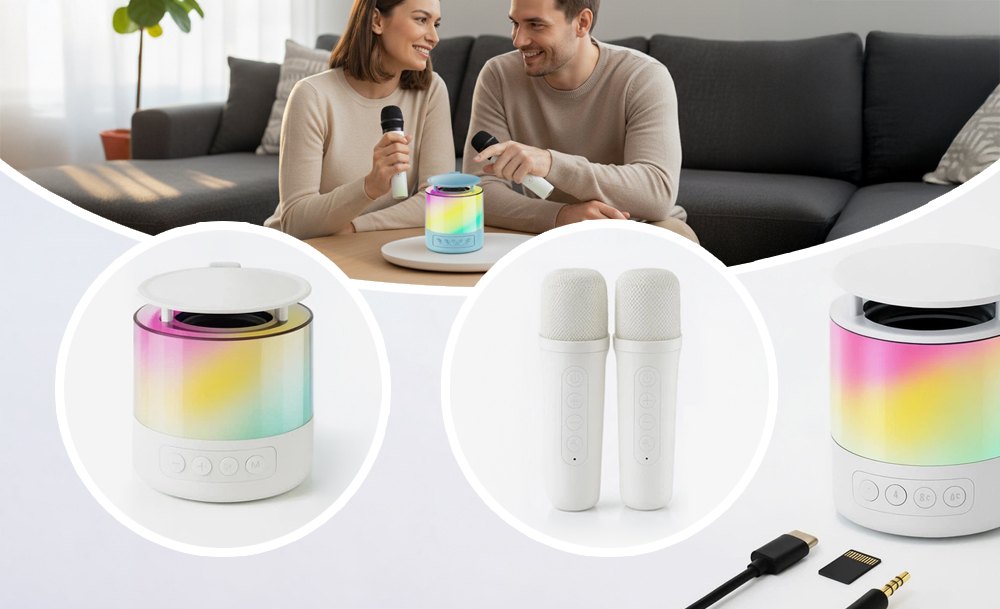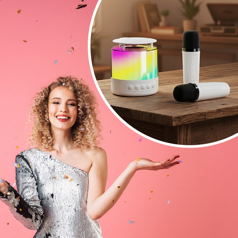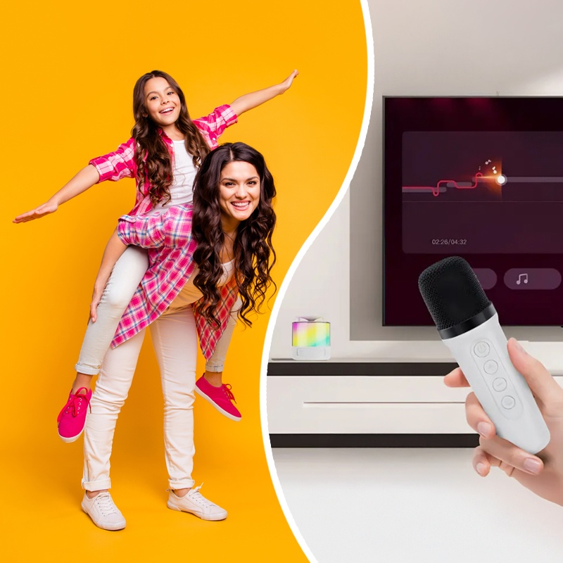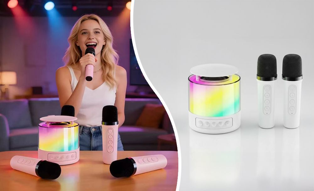 Караоке-набір K19 – готове рішення для сімейних свят та дружніх зустрічей. Портативна колонка з яскравим LED-підсвічуванням перетворює будь-яке місце на запальний танцпол. Чистий стереозвук з глибокими басами та динамічна світломузика створюють атмосферу справжньої вечірки де завгодно – вдома, на природі чи в поїздці.