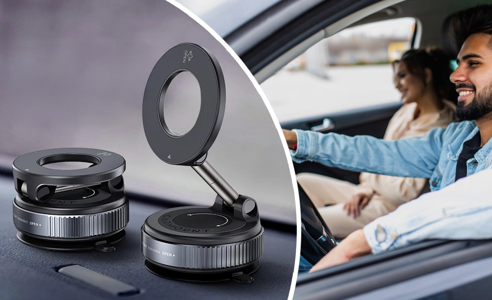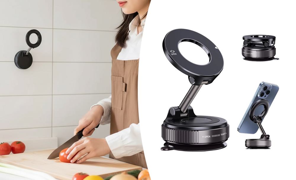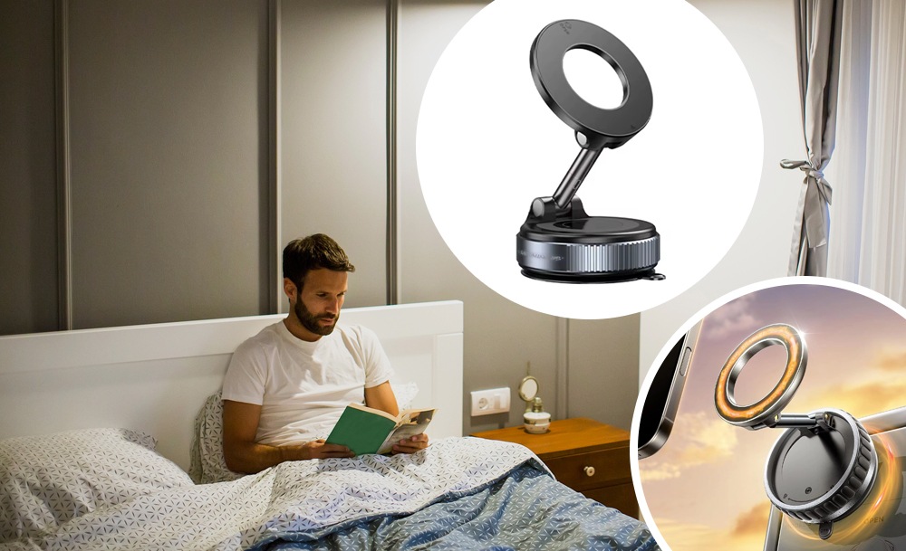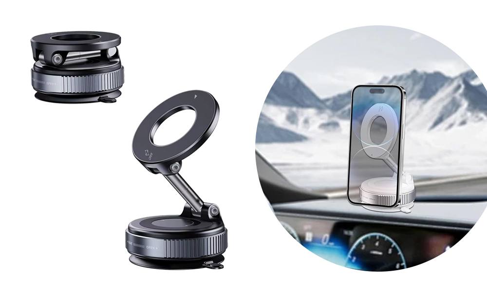 Вільне обертання на 360° дозволяє обирати зручний кут огляду для навігації, дзвінків або перегляду відео. Сумісність з MagSafe робить тримач придатним для будь-яких смартфонів з магнітним кільцем. Компактний гаджет економить місце та забезпечує безпеку в дорозі: руки завжди залишаються на кермі, а телефон – під постійним контролем.