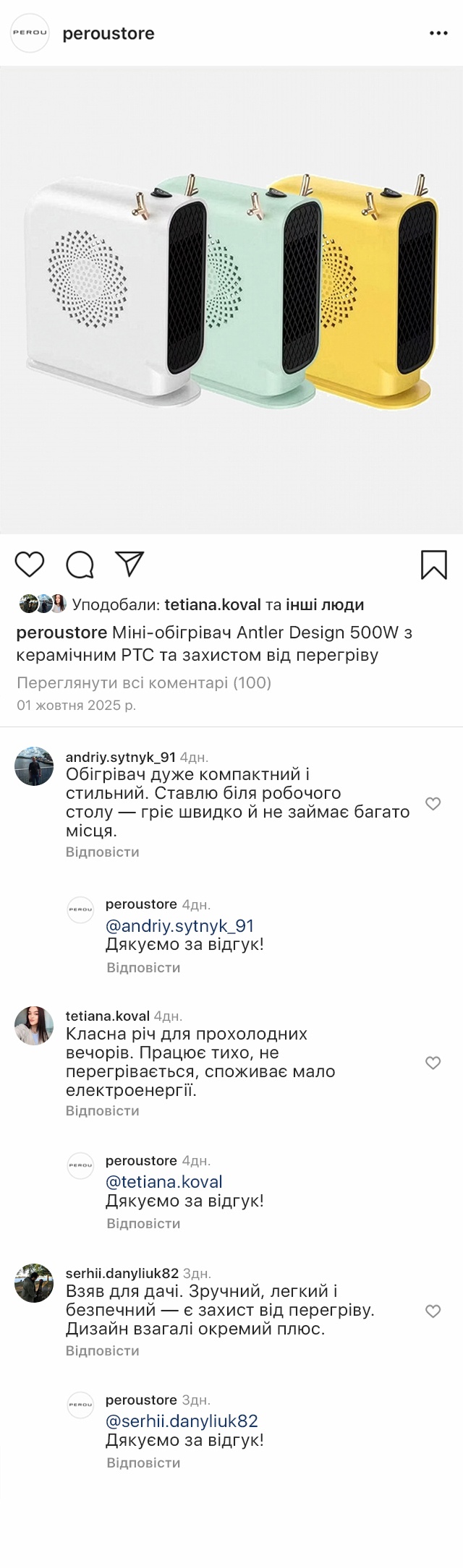 Прилад має вбудований захист від перегріву та автоматично вимикається у разі перекидання, що забезпечує повну безпеку під час використання. Безшумна робота не відволікає під час роботи чи відпочинку. А оригінальний дизайн з «оленячими рогами» додає інтер’єру стилю та затишку. Обігрівач ідеально підходить для робочого столу або невеликих приміщень.
