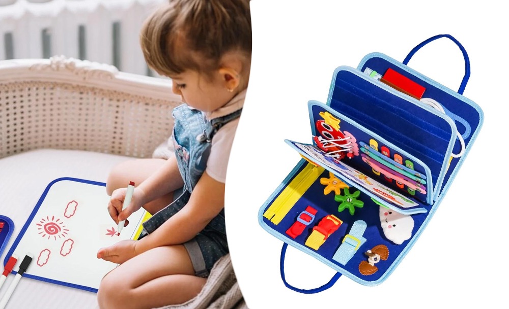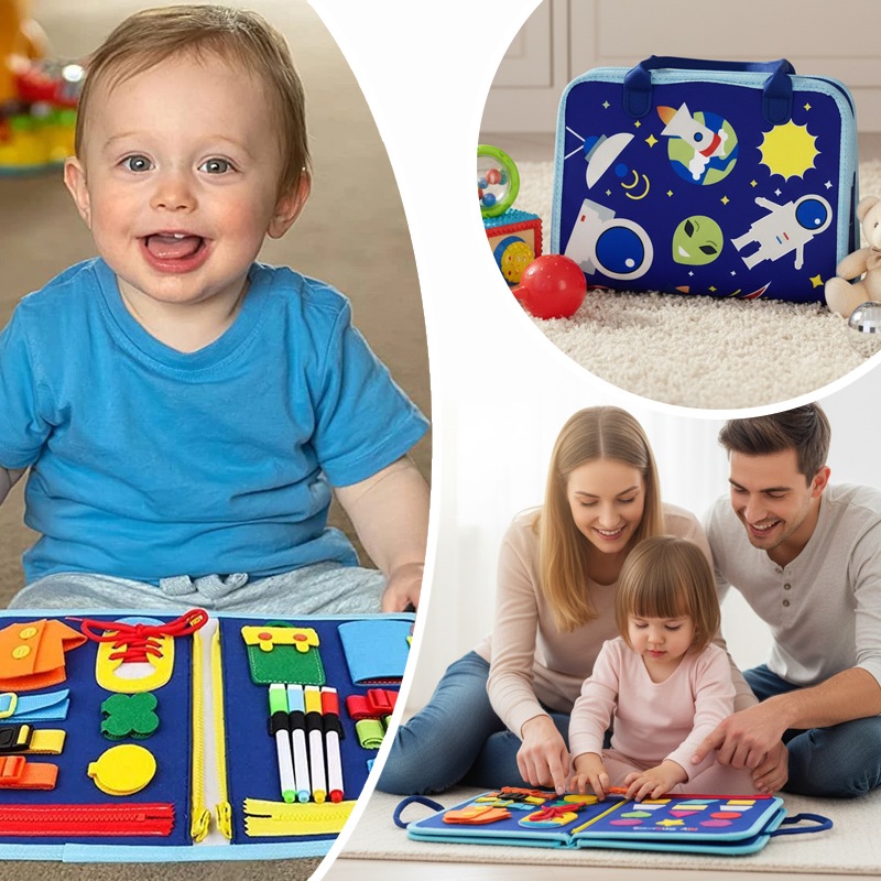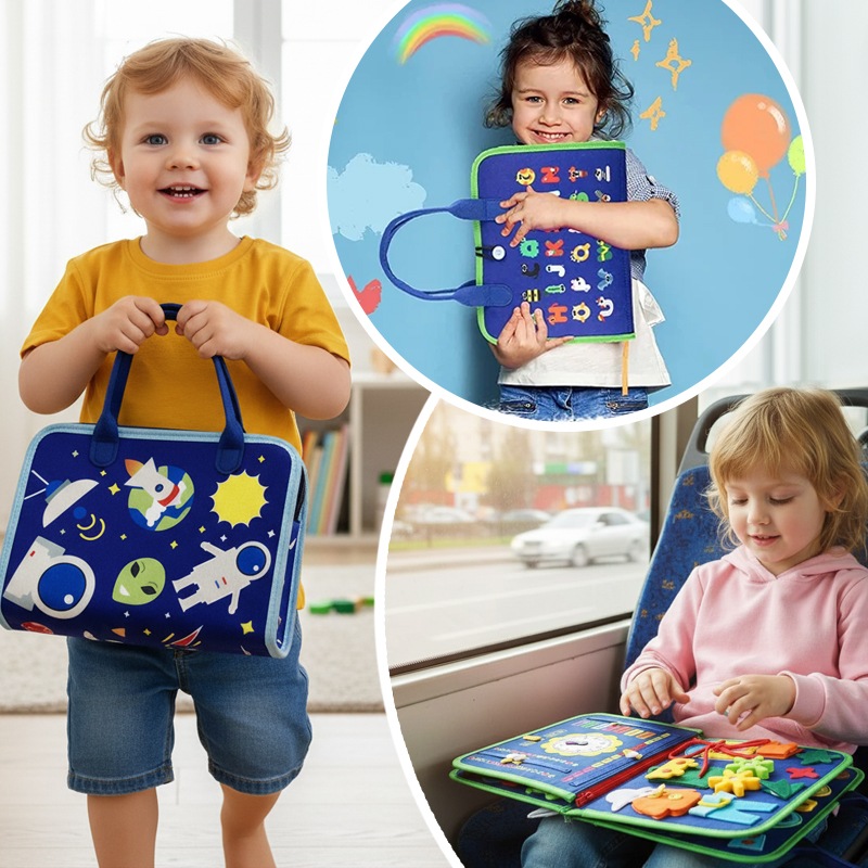 Компактна та безпечна, ця сумка-дошка ідеально підходить для ігор вдома, у поїздках або на прогулянці. Busy Board перетворює навчання на захоплююче заняття, розвиваючи самостійність, концентрацію та цікавість дитини. Вона також чудово підходить для спільної гри з батьками.