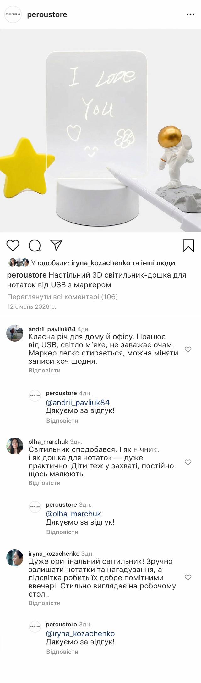 Живлення від USB дозволяє підключати світильник до ноутбука, павербанка або адаптера без зайвих дротів. У комплекті є зручний маркер, а поверхня легко очищується – можна писати й стирати знову і знову. Це ідеальне рішення для робочого столу, офісу, дитячої кімнати або оригінального подарунка до будь-якого свята.