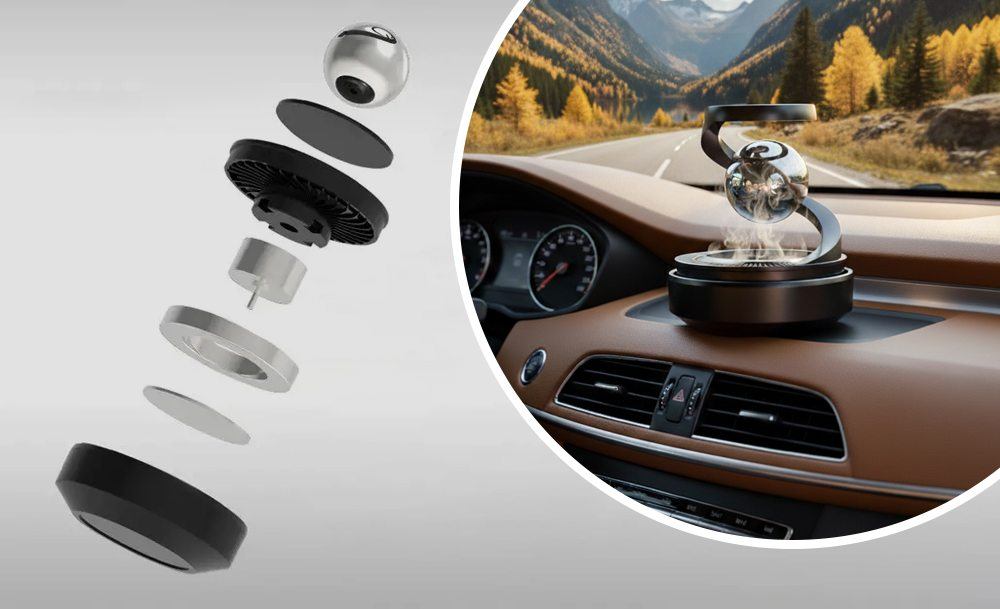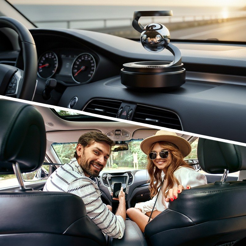 Стильний ароматизатор наповнює салон свіжим океанічним бризом, створюючи приємну атмосферу. Сонячна панель запускає плавне обертання кулі, рівномірно усуваючи неприємні запахи. З цим комплектом поїздки стають по-справжньому легкими та приємними.