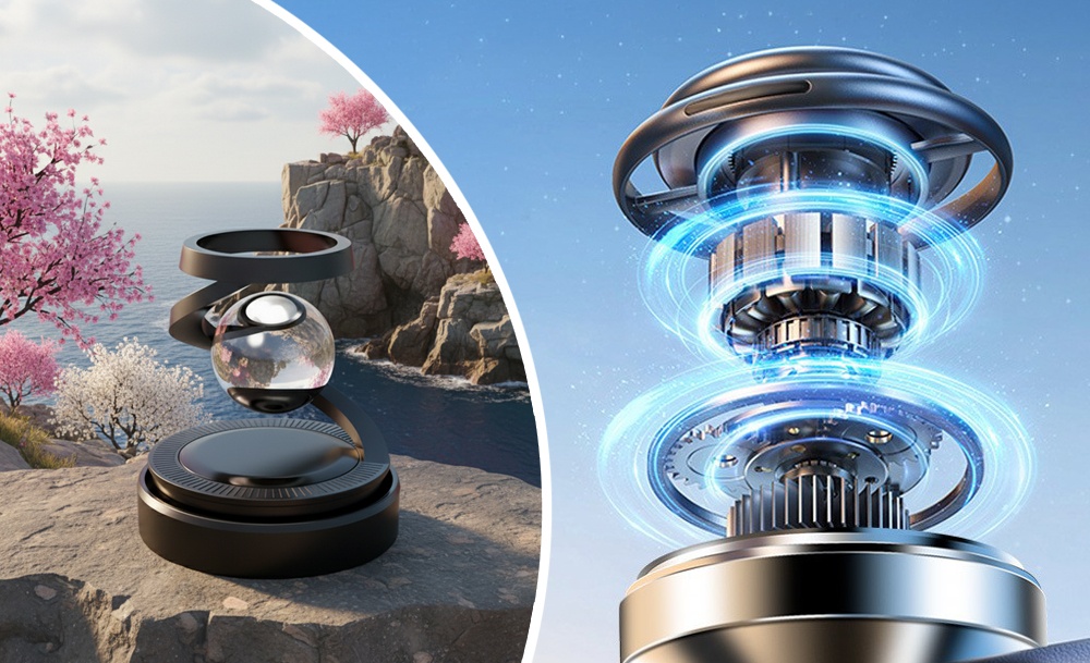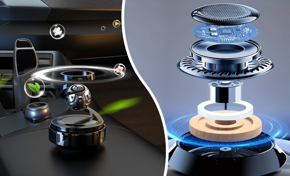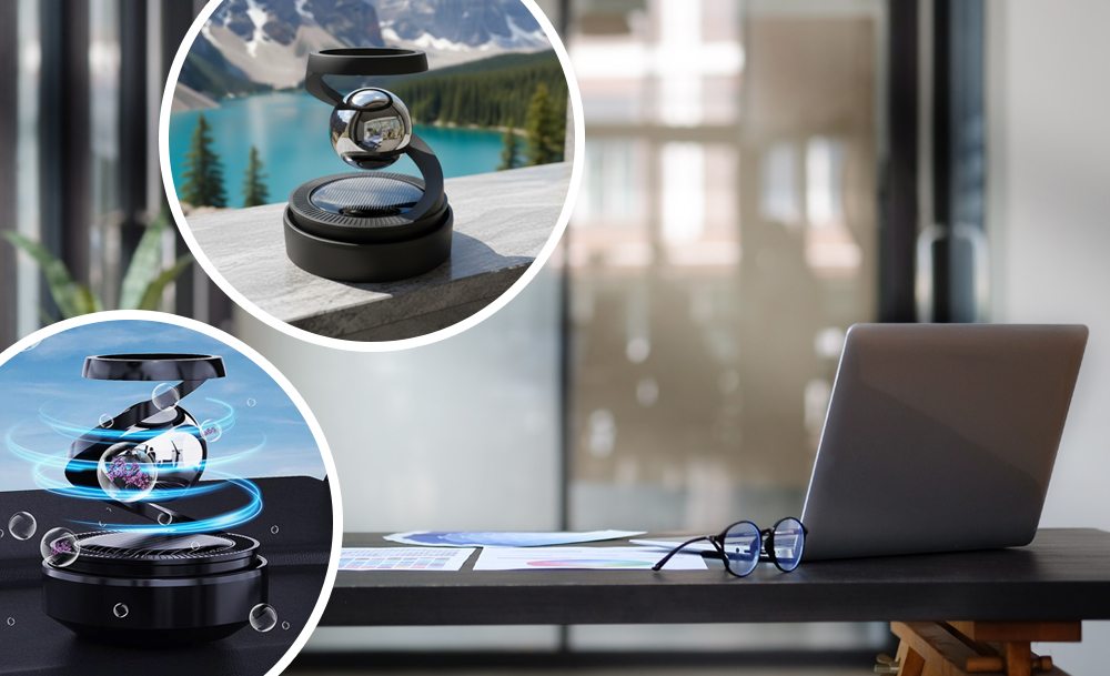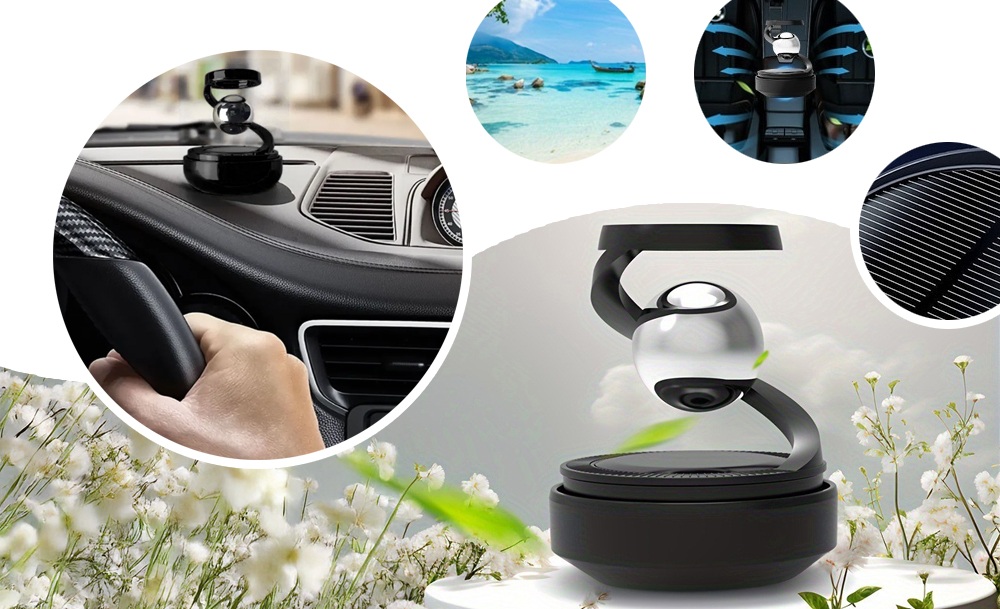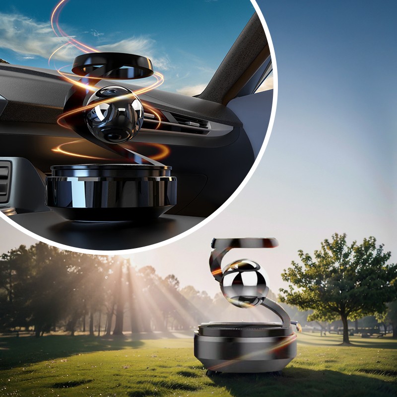 Обертовий автомобільний ароматизатор Океан на сонячній батареї – стильне рішення для тих, хто хоче підтримувати свіжість у салоні без зайвих витрат. Сонячна панель запускає плавне обертання левітуючої кулі, яка рівномірно поширює океанічний бриз по всьому автомобілю.