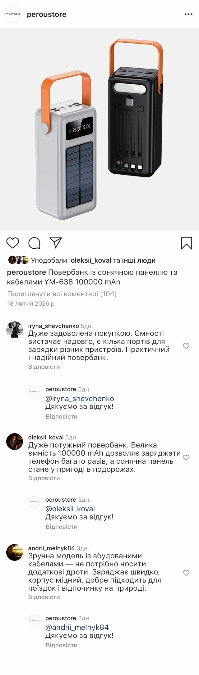 Вбудована сонячна панель робить повербанк особливо корисним у подорожах та на відпочинку. Пристрій забезпечений кількома виходами та вбудованими кабелями, тому не потребує додаткових дротів. Міцний корпус стійкий до повсякденного навантаження.
