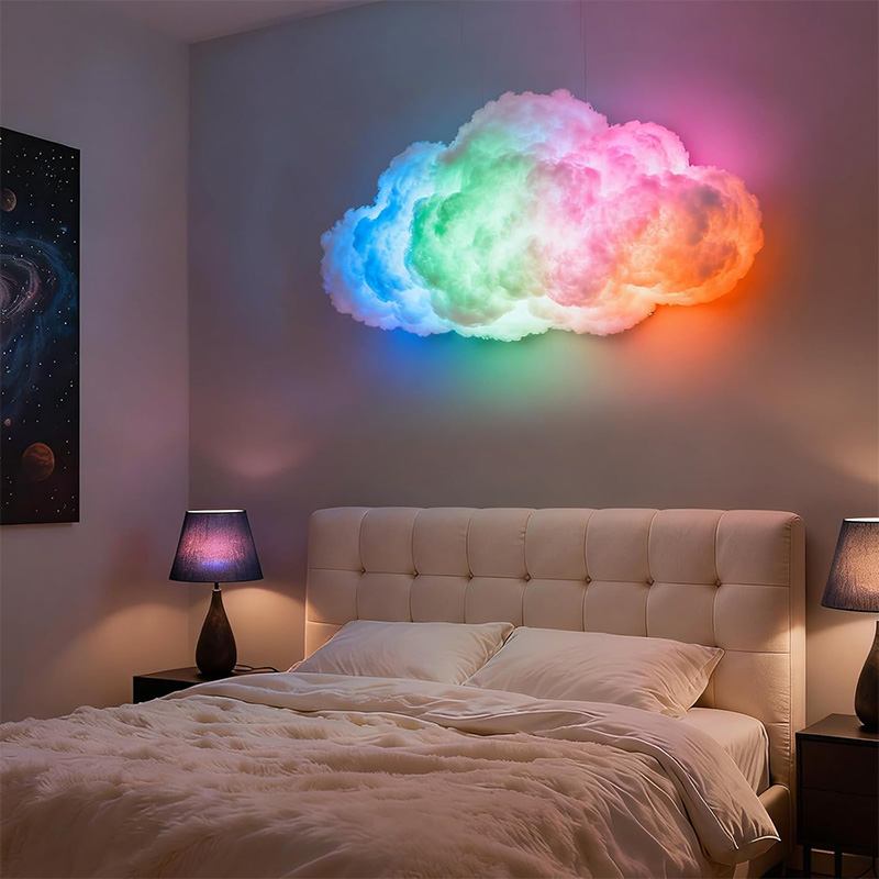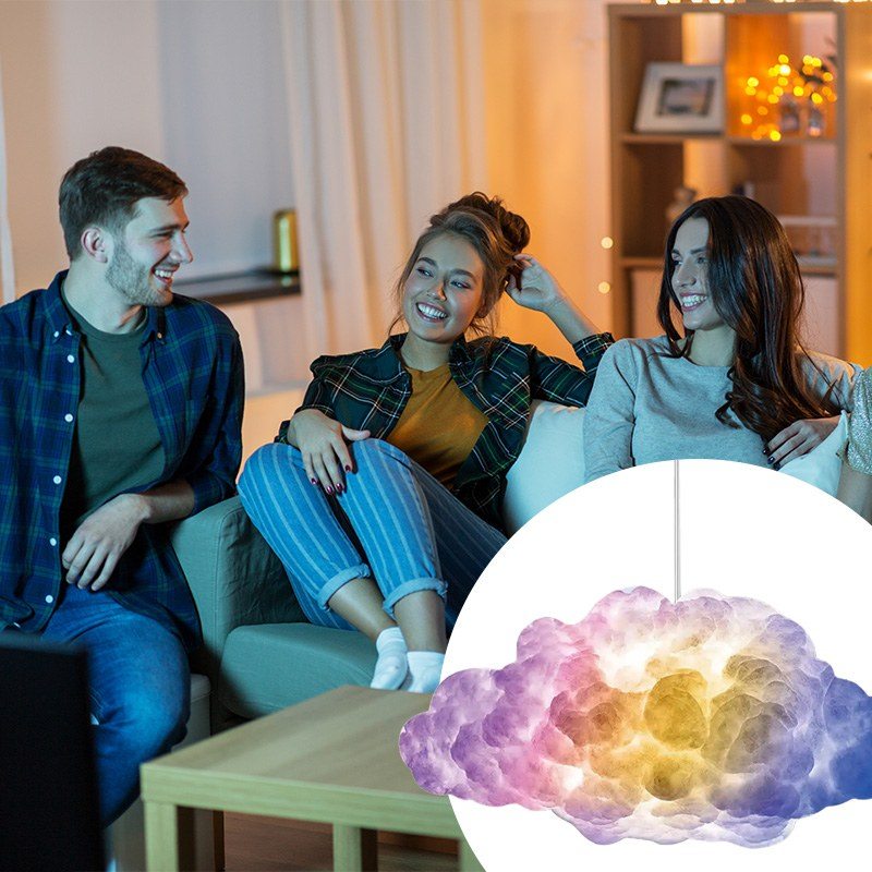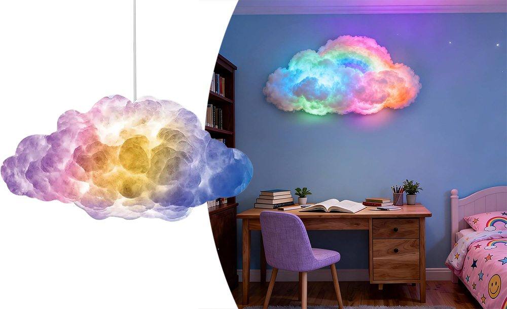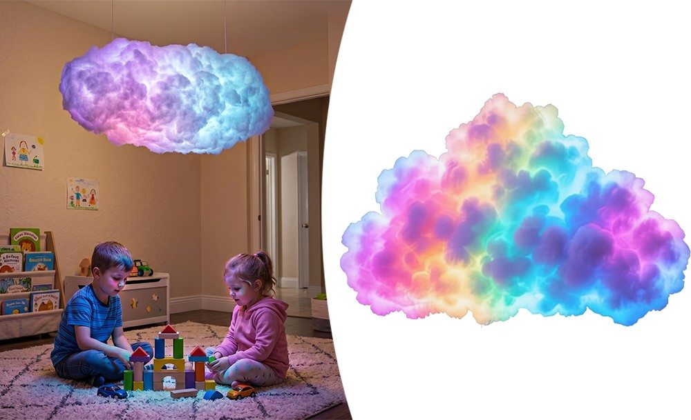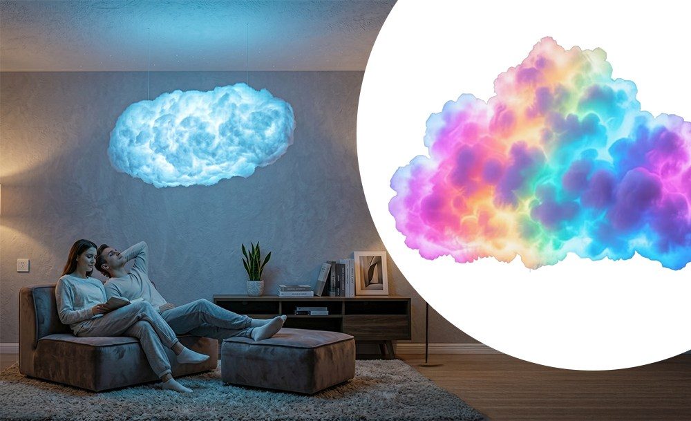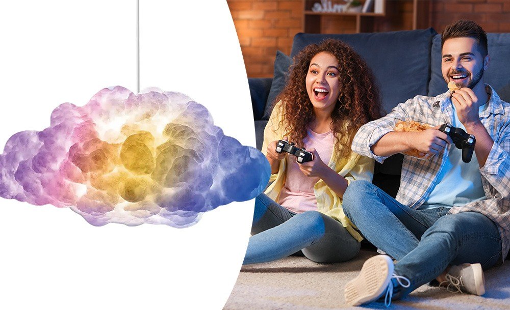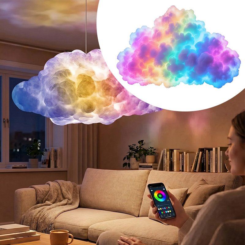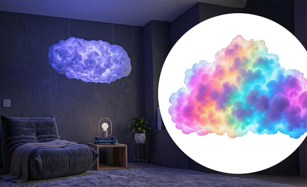 Розумна LED-лампа Cloud Light – це атмосферний інтер’єрний нічник у формі хмаринки з ефектом грому та блискавки. RGB-підсвітка створює м’яке світіння або динамічні світлові сцени, наповнюючи простір затишком чи енергією. Управління через Bluetooth та мобільний додаток дозволяє легко вибирати кольори, яскравість і режими під свій настрій.
