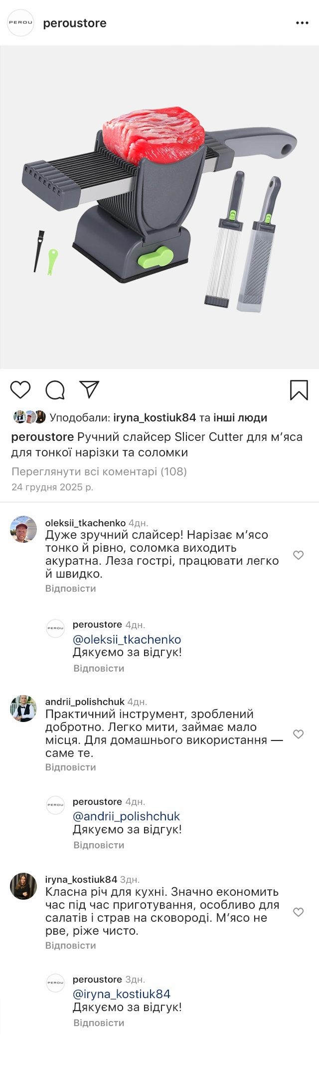 Ручний слайсер Slicer Cutter незамінний для швидкої та акуратної нарізки будь-яких продуктів. З його допомогою легко виходять тонкі скибки та рівна соломка для приготування ідеальних страв. Гострі леза гарантують точний і гладкий зріз, зберігаючи структуру та соковитість м’яса, сиру, овочів або фруктів.