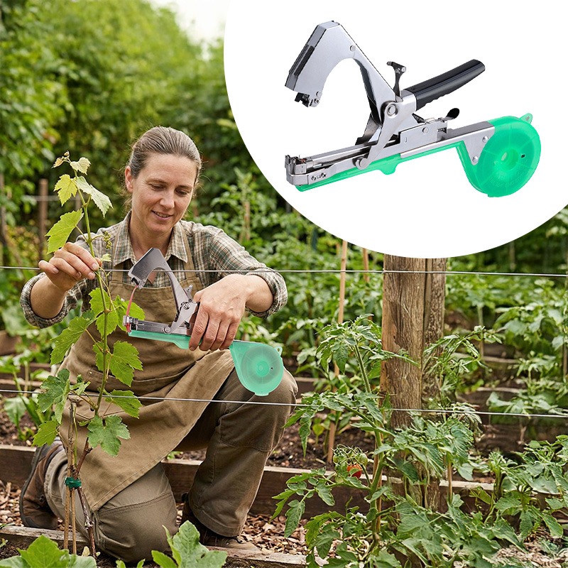 Надійний механізм забезпечує міцне кріплення підв’язувальної стрічки та не травмує стебла винограду, помідорів, огірків, квітів, дерев та інших рослин. Універсальність степлера робить його ідеальним помічником для роботи як у теплицях, так і на відкритому ґрунті.