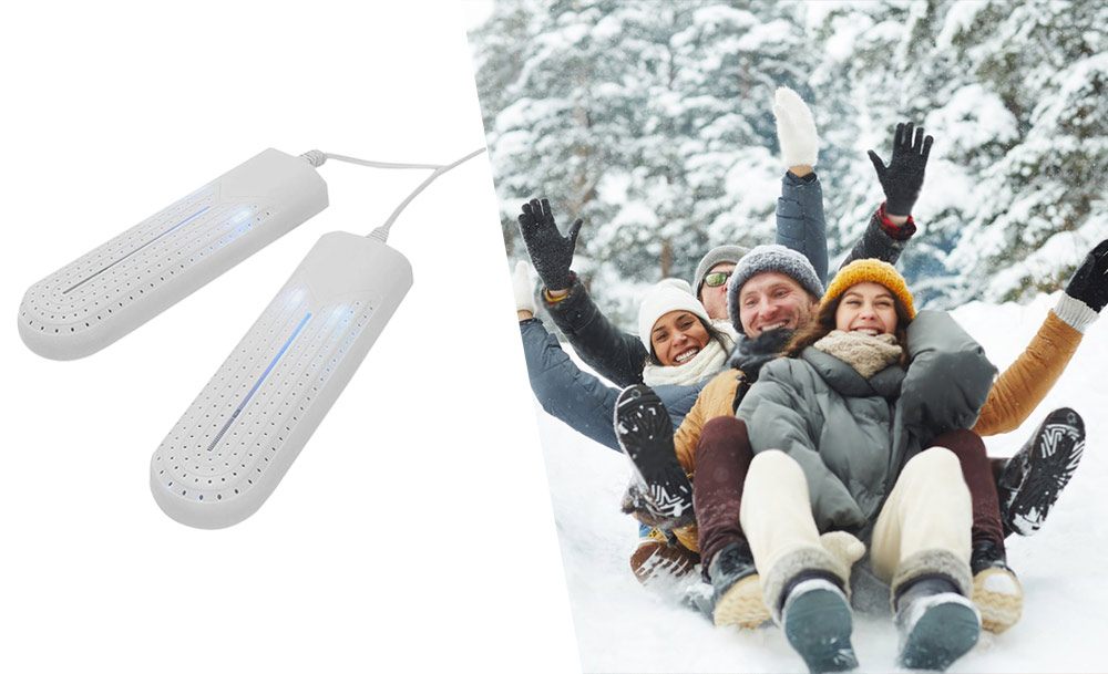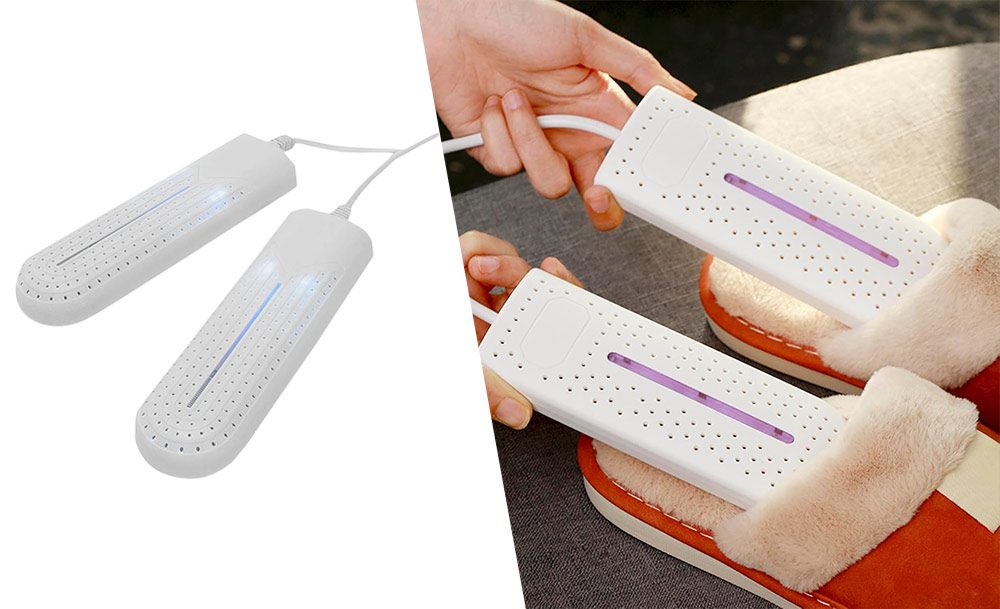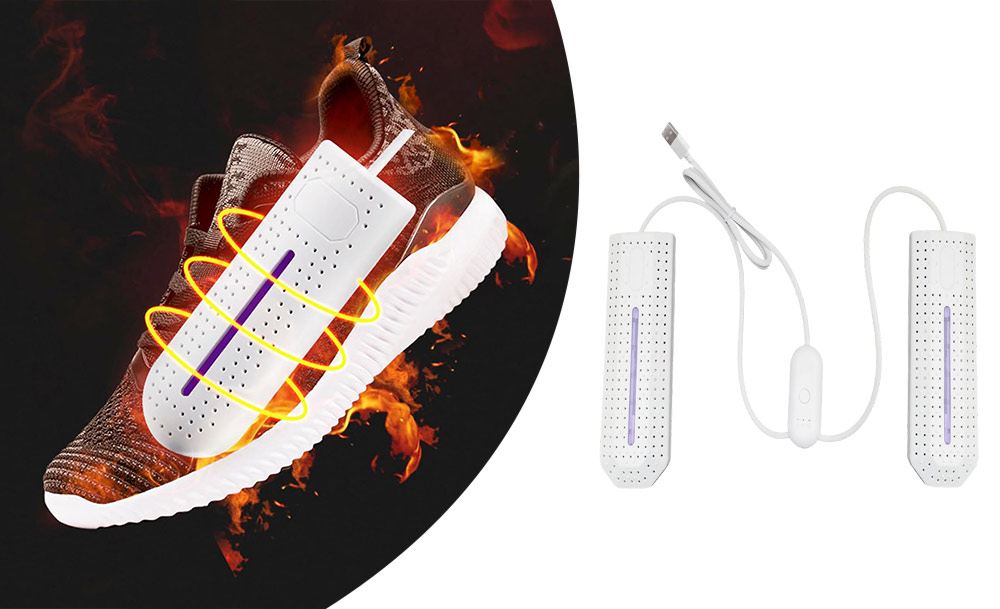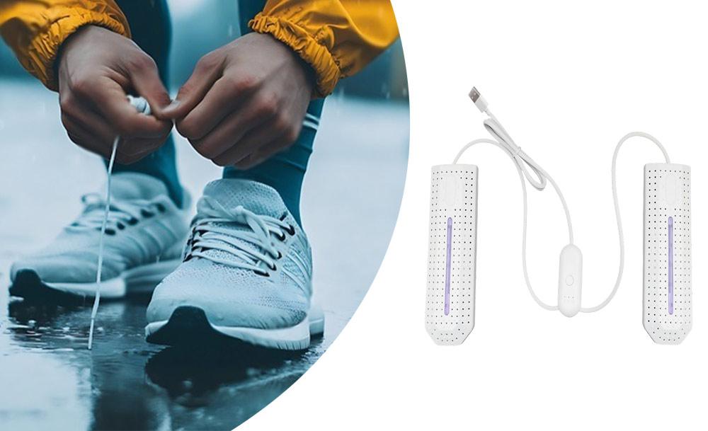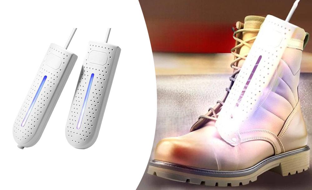 А електрична USB-сушарка для взуття швидко видаляє вологу, запобігаючи появі неприємного запаху. Вбудоване ультрафіолетове випромінювання знищує бактерії і грибки, ефективно дезінфікуючи внутрішню поверхню взуття.