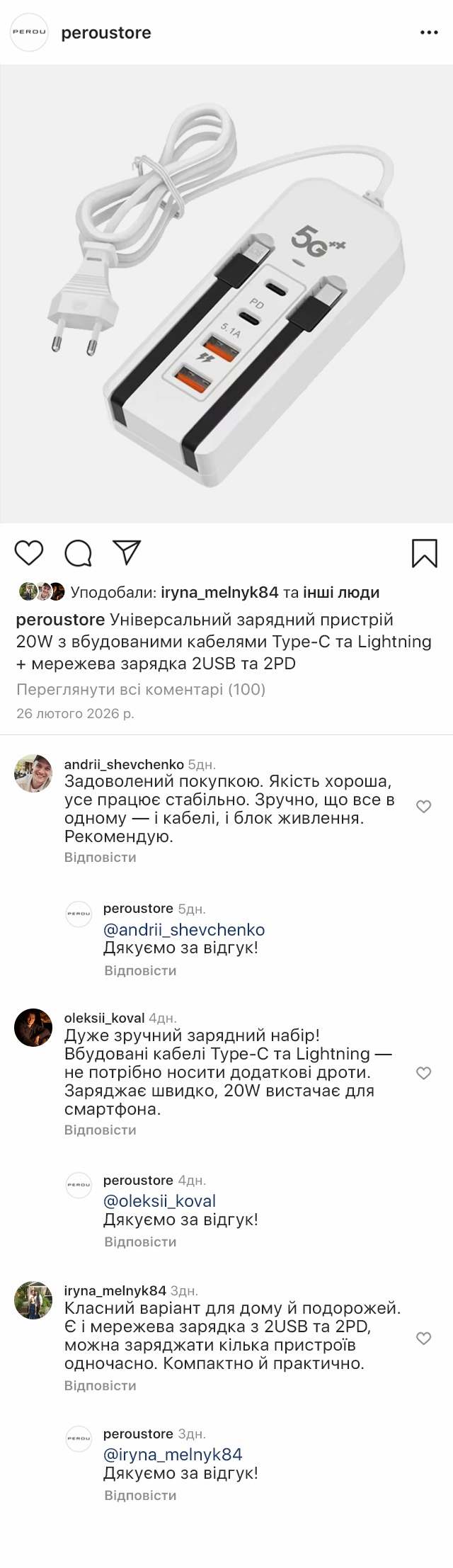 Універсальний зарядний пристрій 20 Вт зі вбудованими кабелями Type-C та Lightning і мережна зарядка на 2 USB та 2 PD – це зручний комплект для швидкого підзаряджання будь-яких девайсів. Продумане поєднання дозволяє обходитися без зайвих проводів та адаптерів, заощаджуючи місце та час.